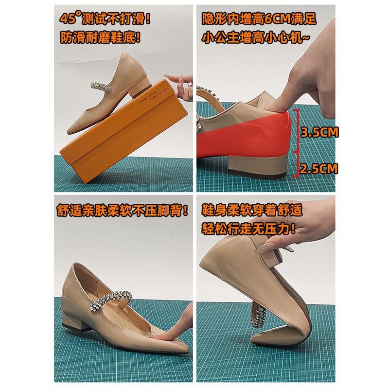 真皮不累脚隐形内增高6cm玛丽珍女鞋小个子法式气质水钻尖头单鞋