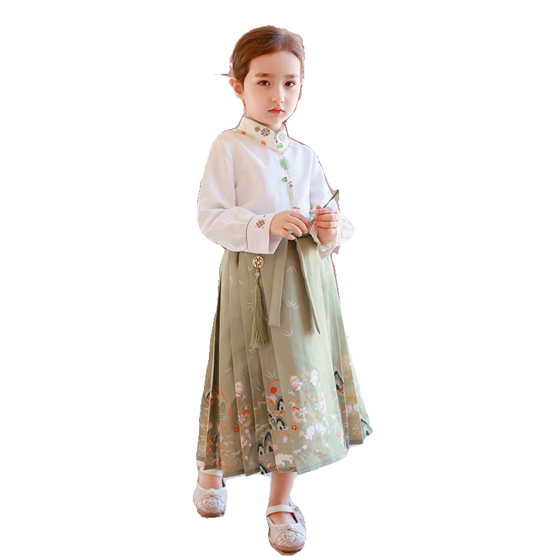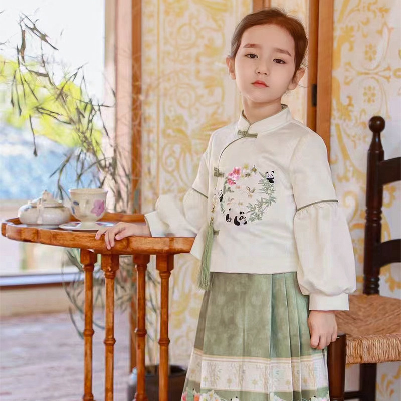 女童马面裙套装中大童春款汉服刺绣连衣裙熊猫裙子国风开衫衬衫