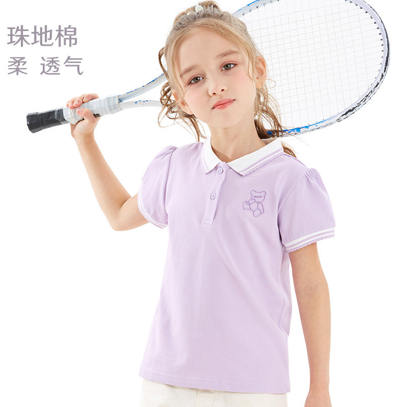女童短袖T恤儿童上衣2026新款夏装大童polo衫洋气白色打底衫童装