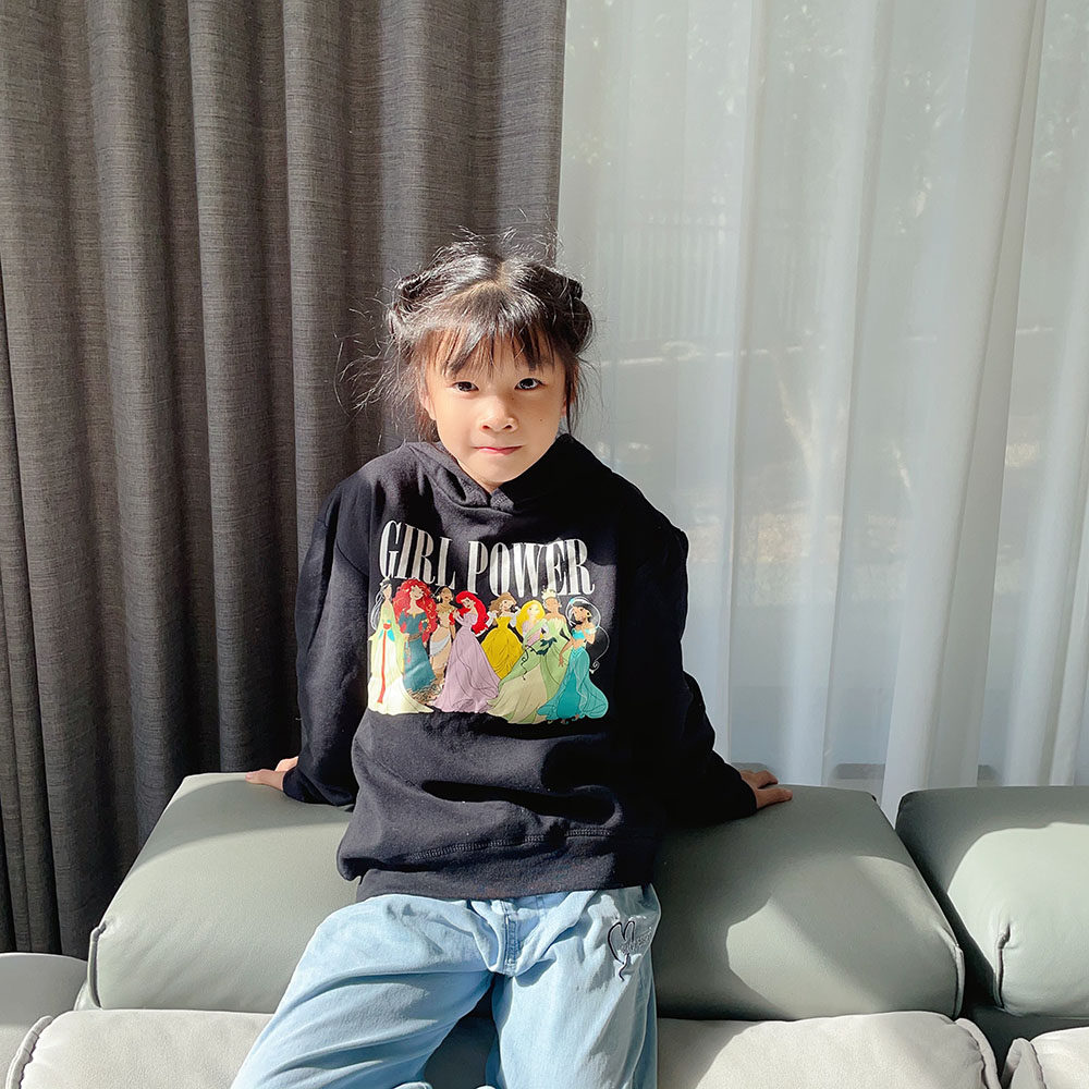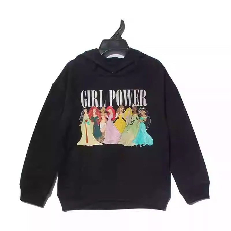 外贸尾货儿童卫衣女孩公主卫衣女童薄绒黑色衣服美式连帽卫衣