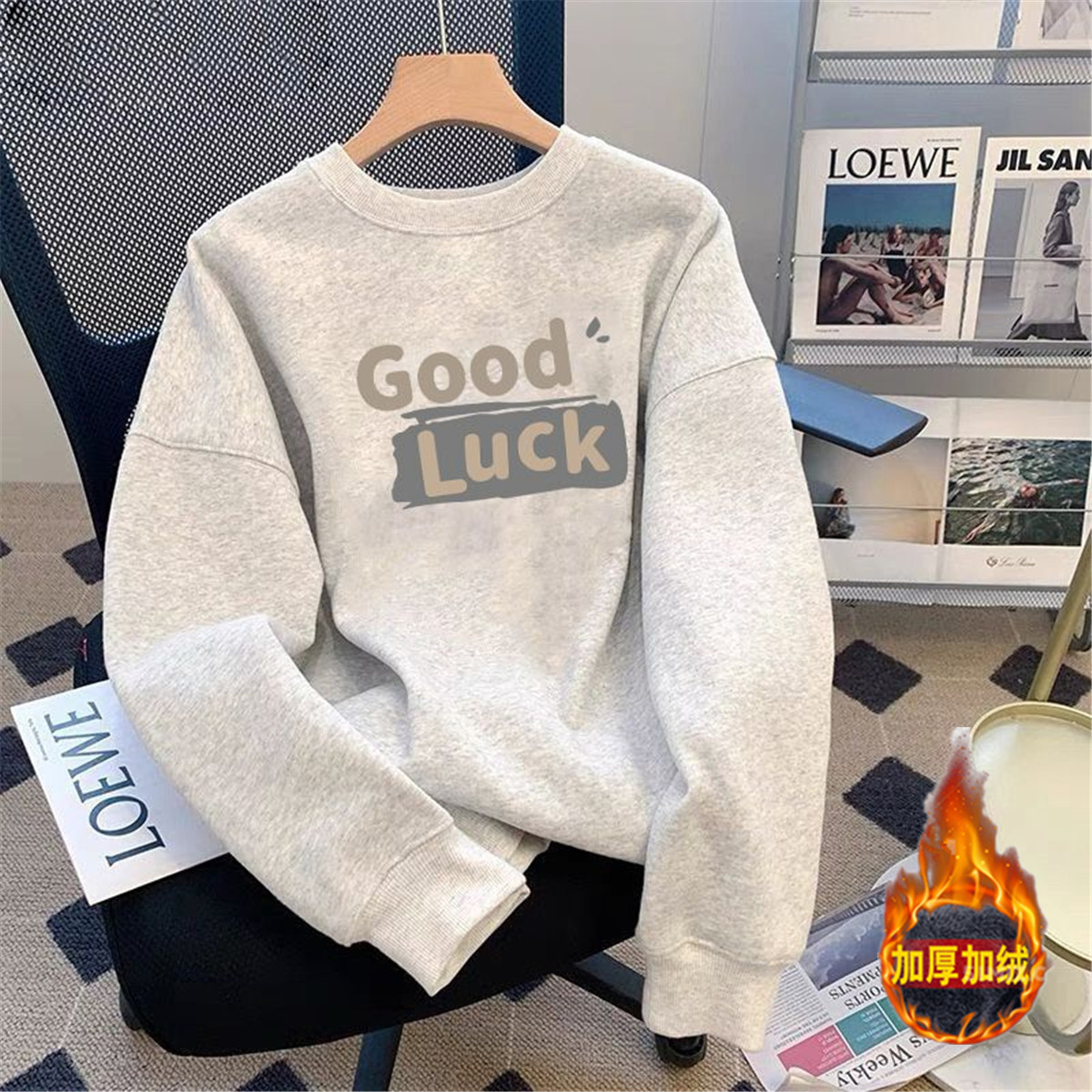 重磅纯棉新款圆领卫衣男女款秋冬装加绒加厚美式潮流宽松情侣外套
