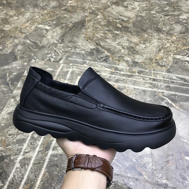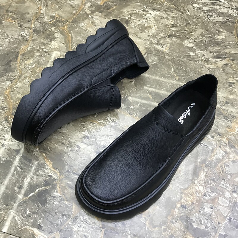 男鞋2025春季真皮百搭透气一脚蹬懒人休闲豆豆鞋软皮厚底乐福鞋潮