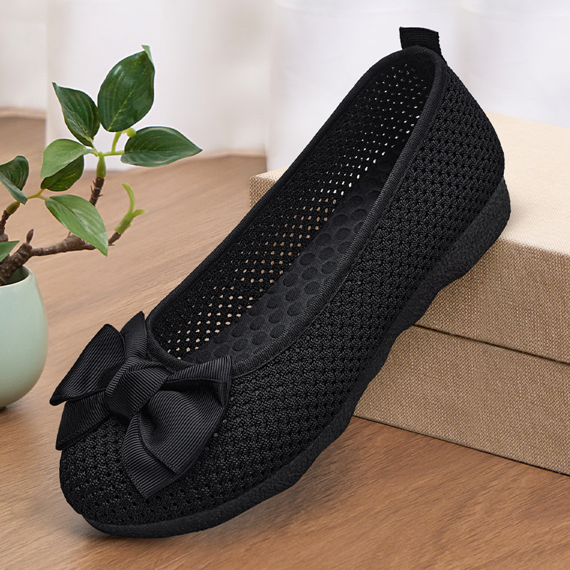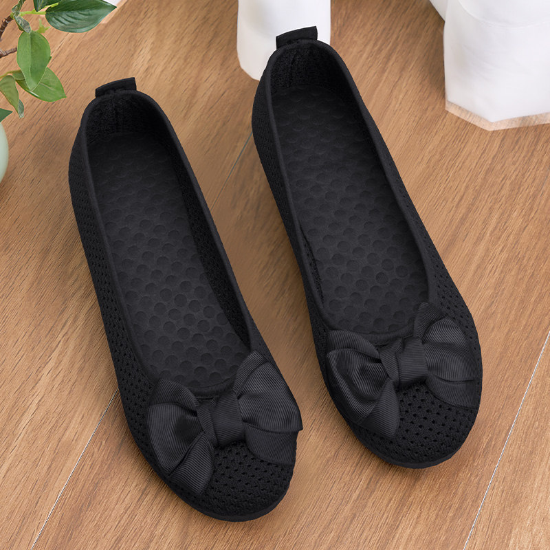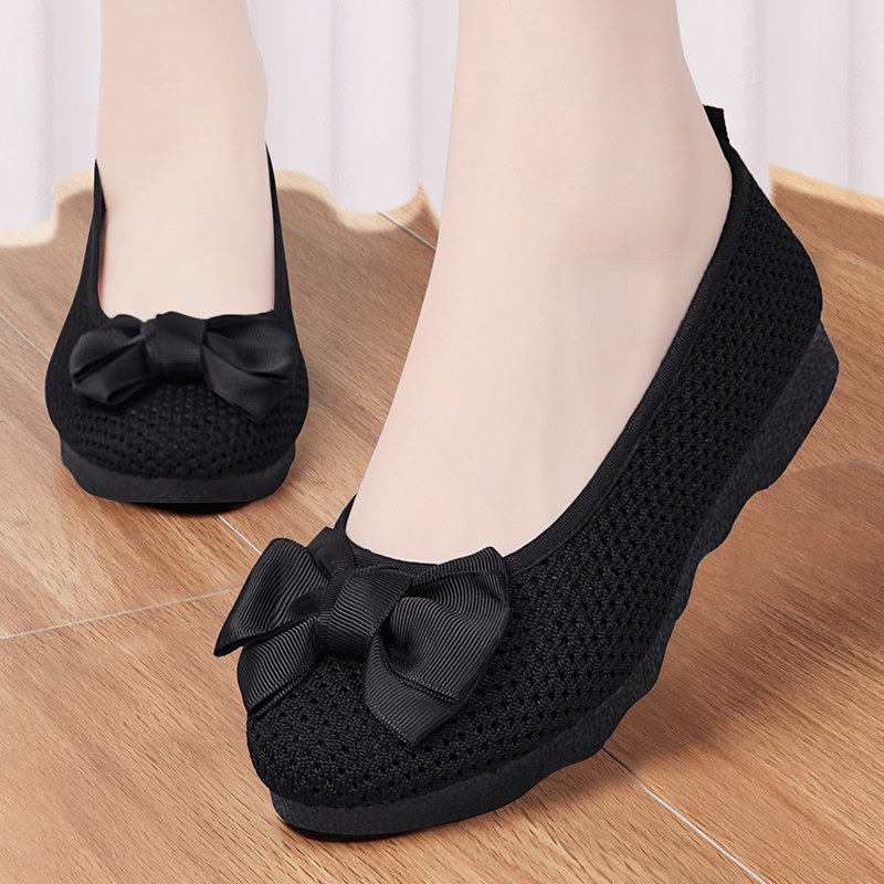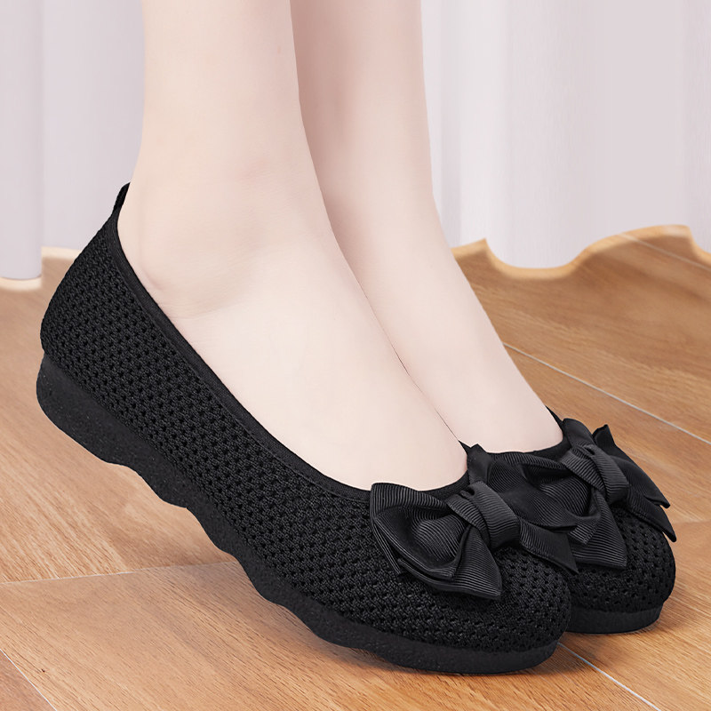 老北京布鞋女新款夏季2026网面豆豆鞋上班透气久站不累黑色工作鞋
