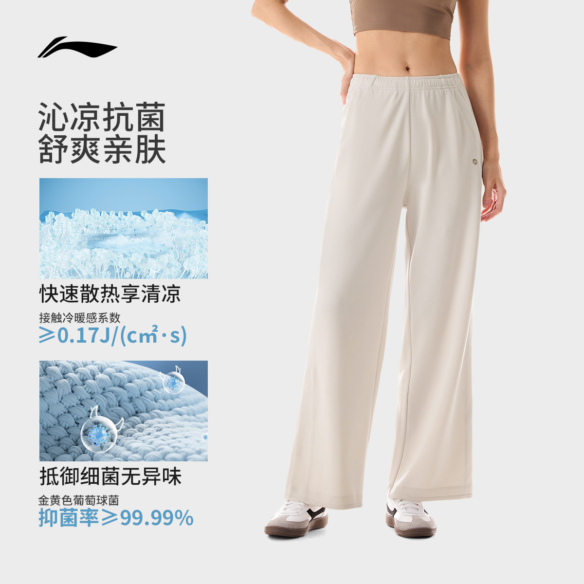 李宁奶芙裤丨阔腿裤直筒裤子女2026新款夏季薄款宽松卫裤运动长裤