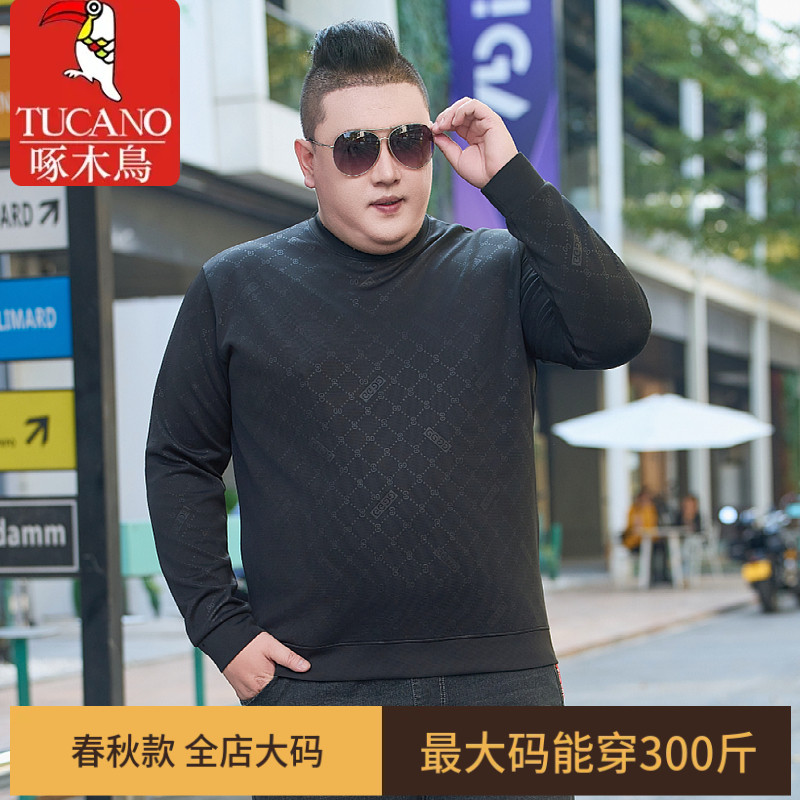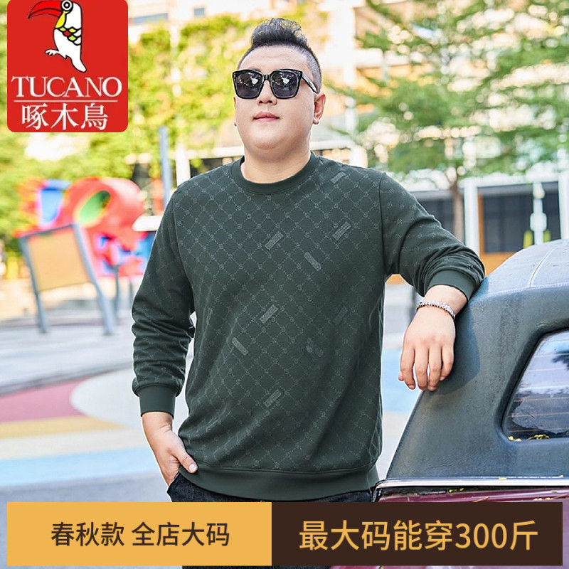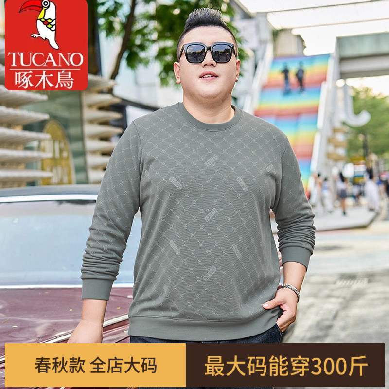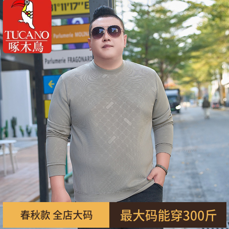 啄木鸟男款卫衣大码宽松圆领套头薄款长袖上衣加肥加大打底T恤衫