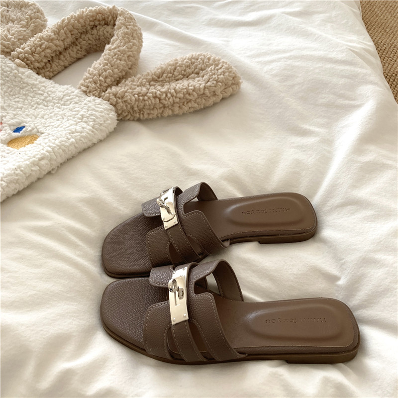 时髦老钱风~!显瘦法式ins温柔夏季凉拖鞋女懒人外穿透气平底拖鞋