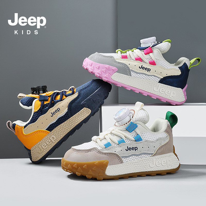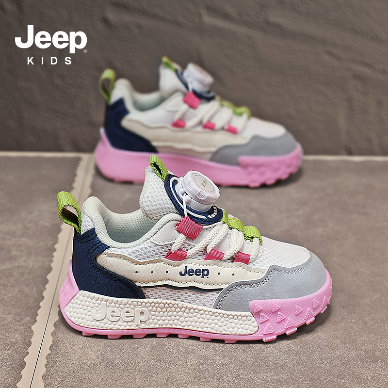 Jeep女童皮面鞋防水防滑跑步男童2026官方男童春夏季网面运动鞋子