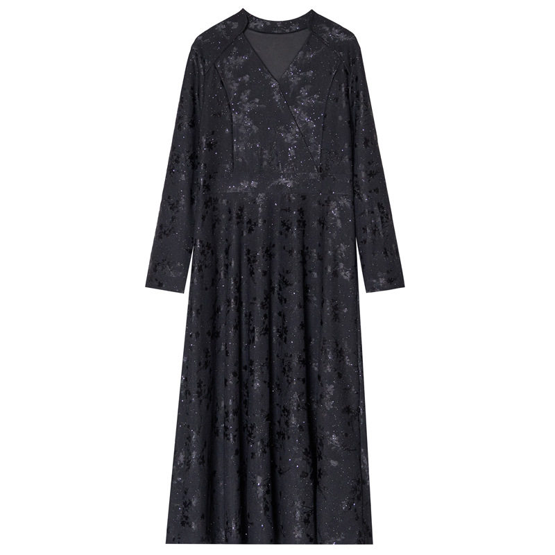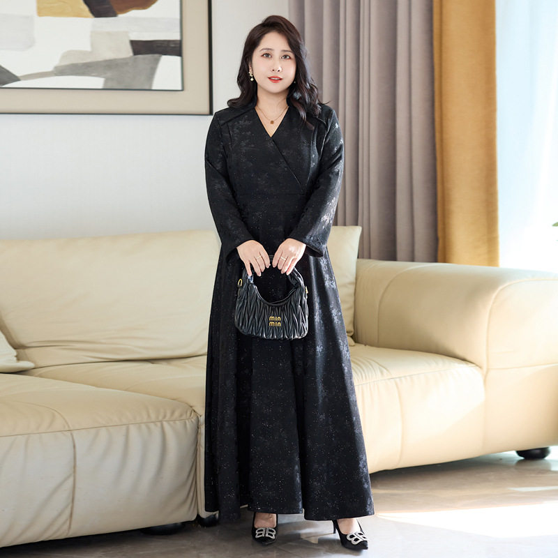 2026春装新款大码女装长袖连衣裙V领修身大摆轻奢显瘦裙长裙 8659