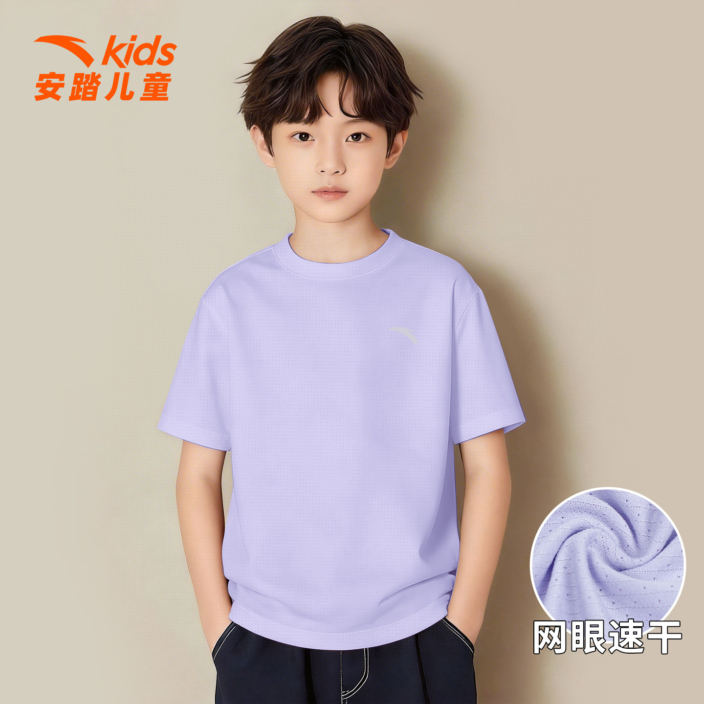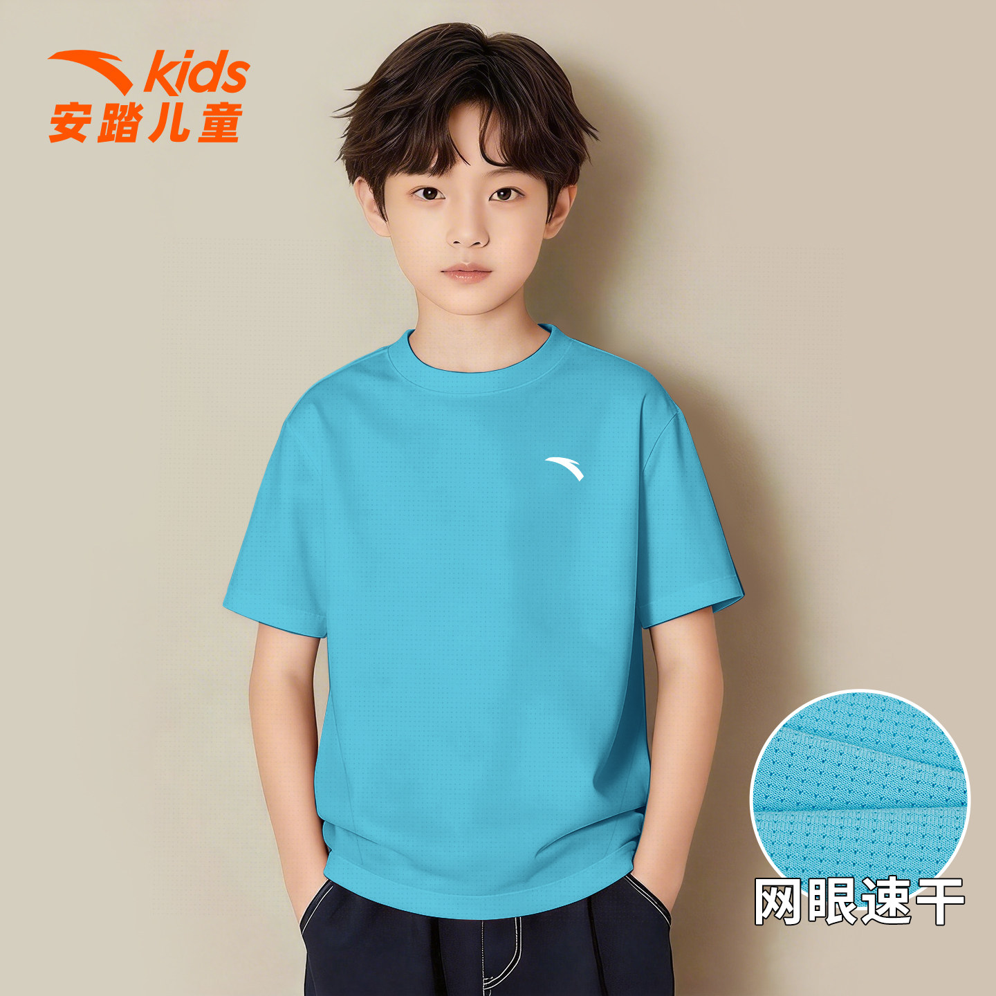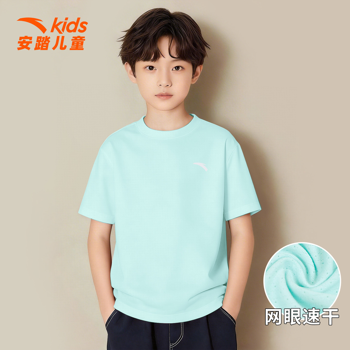 安踏儿童冰丝速干短袖男童夏季青少年薄款透气网眼白色运动t恤衫