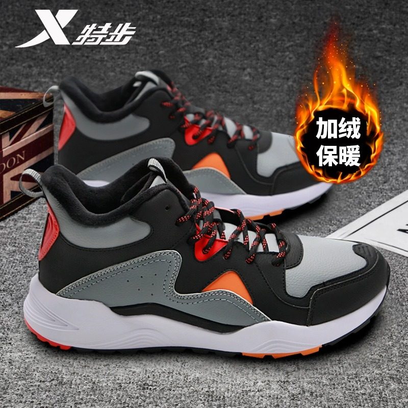 特步男鞋加绒大棉鞋冬季2026正品男士鞋子高帮加厚保暖运动鞋男款