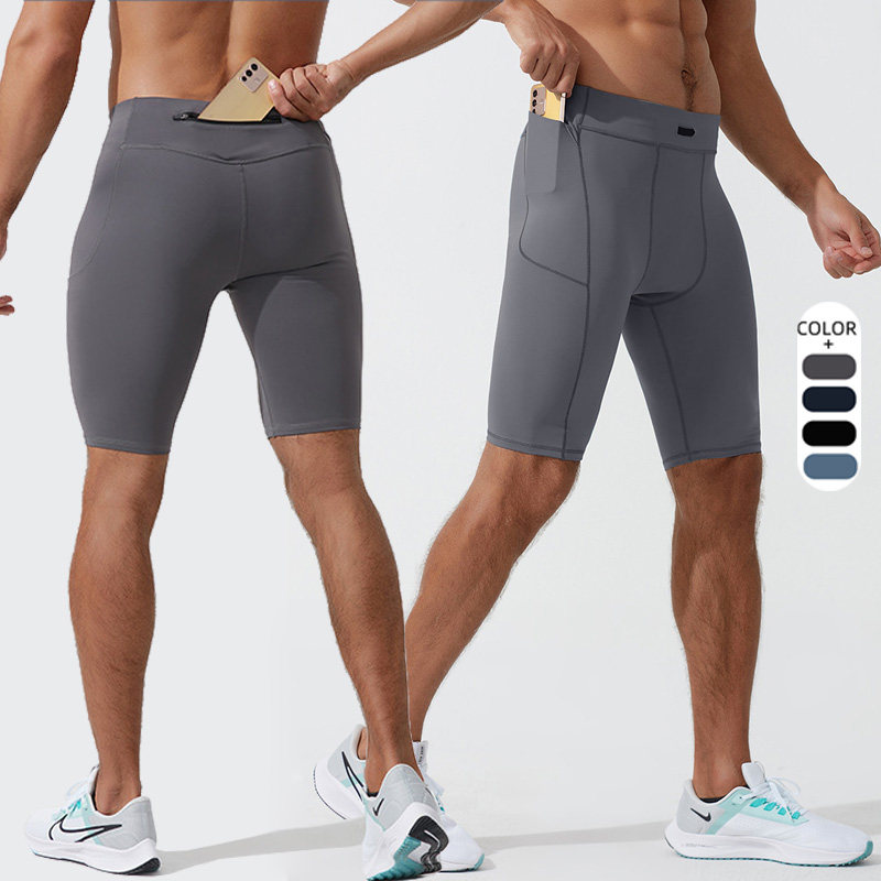跑步压缩短裤男款专业马拉松紧身裤健身训练裤篮球五分裤可放手机