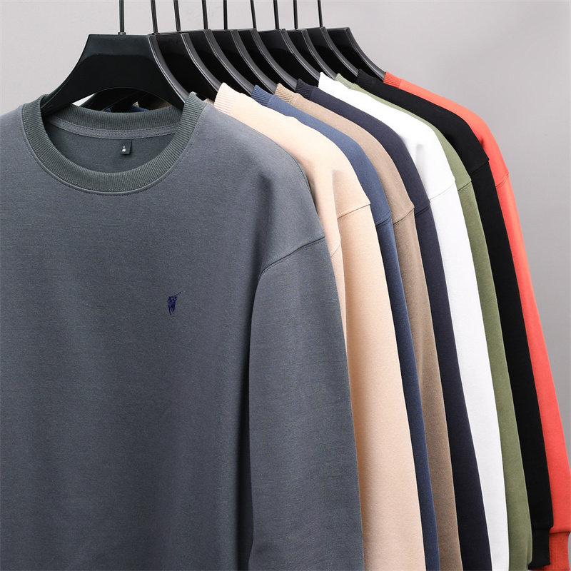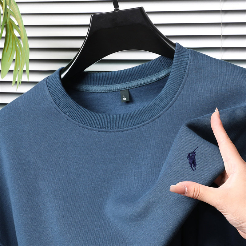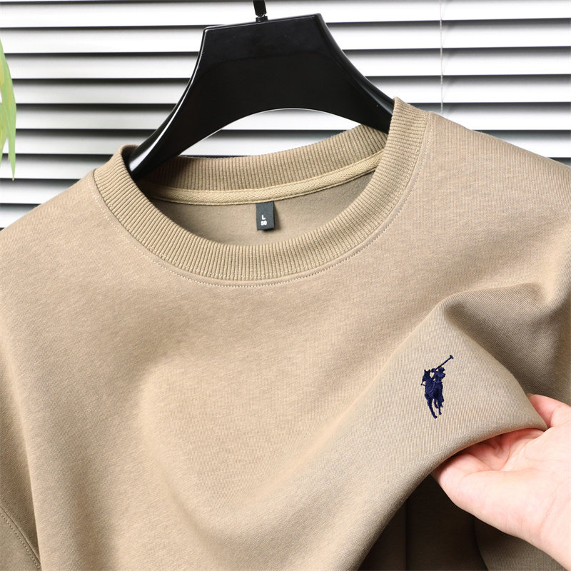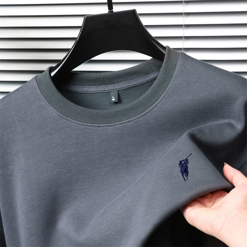保罗圆领落肩袖卫衣男款秋冬重磅白色打底衫刺绣小马标长袖t恤棉