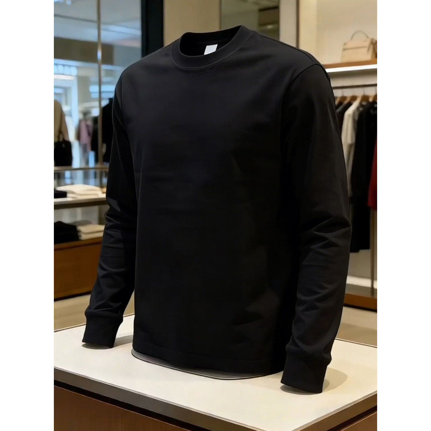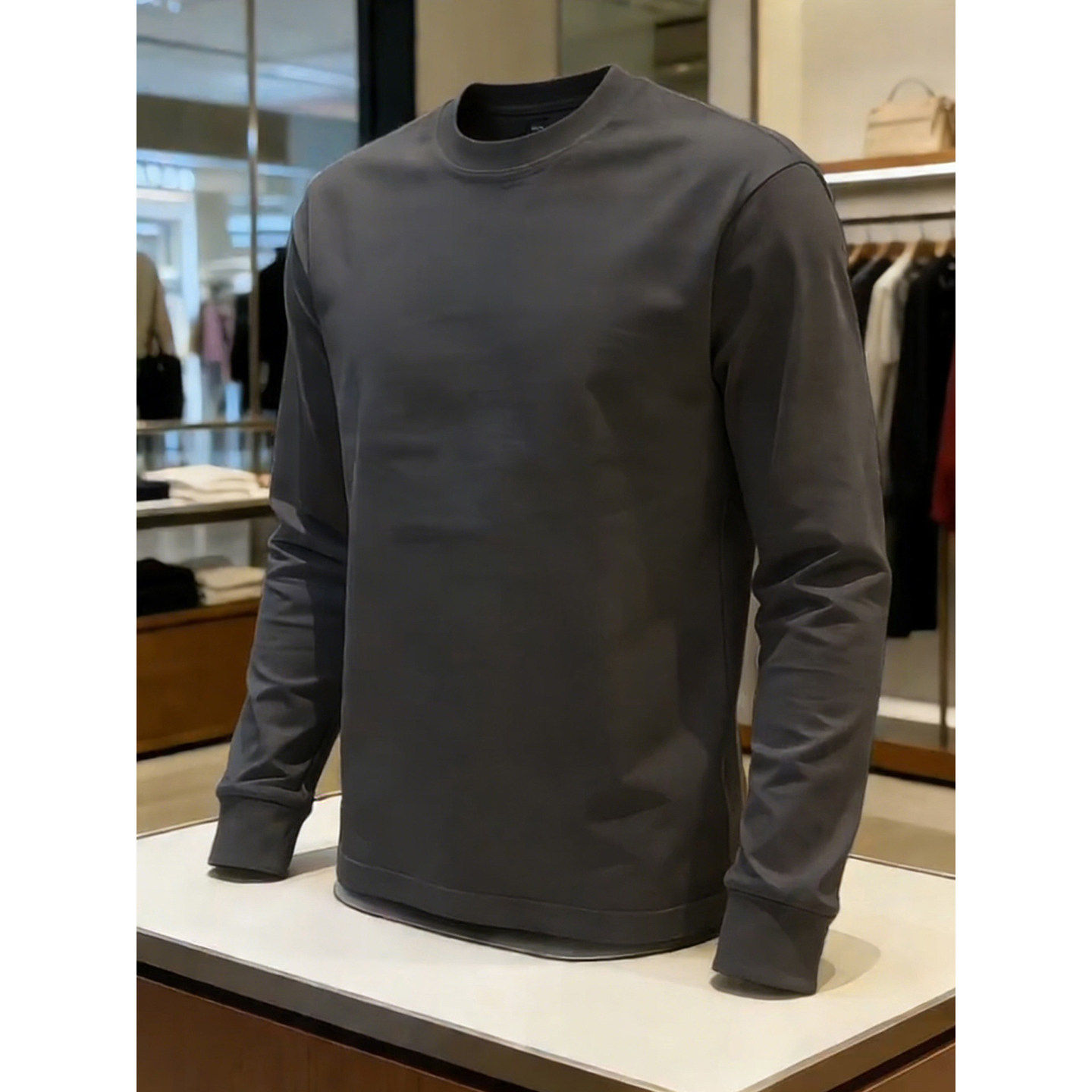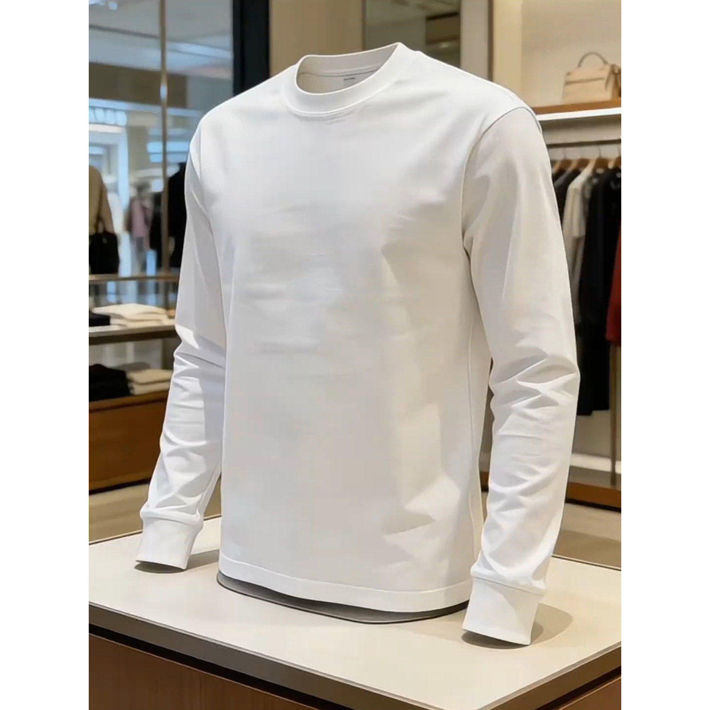 白灰色美式复古重磅卫衣男款春季纯棉圆领长袖t恤正肩内搭打底衫