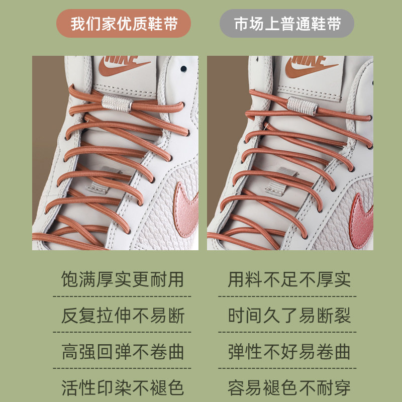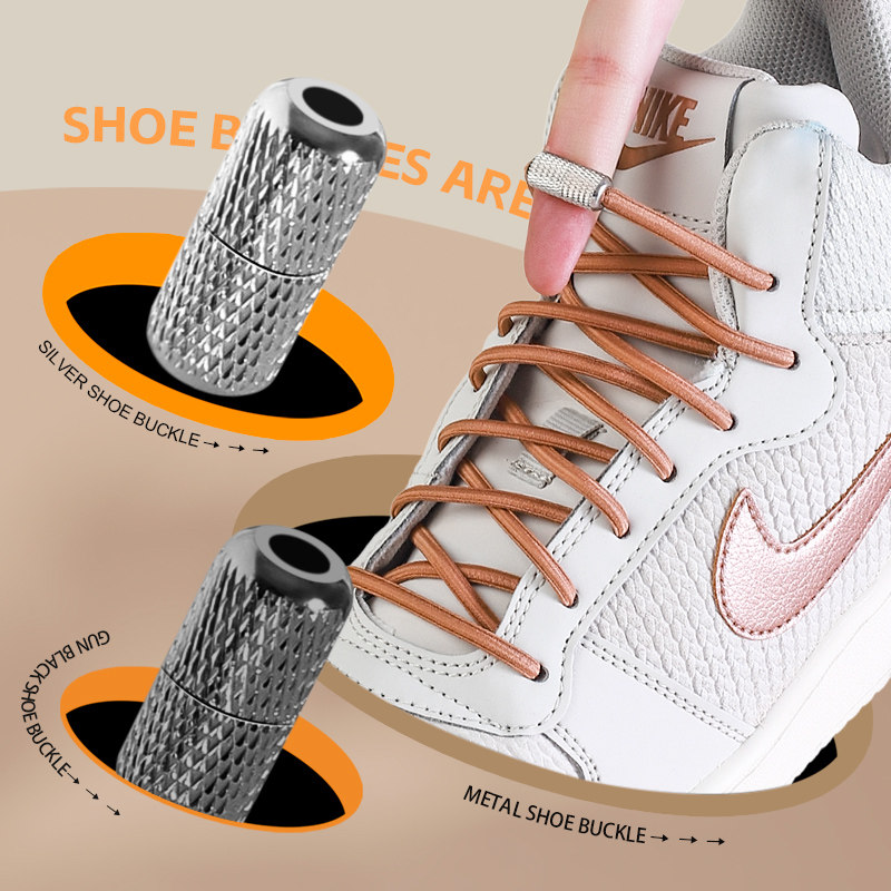 懒人鞋带男款儿童运动鞋免系免绑黑白色加粗半圆松紧弹力绳固定扣