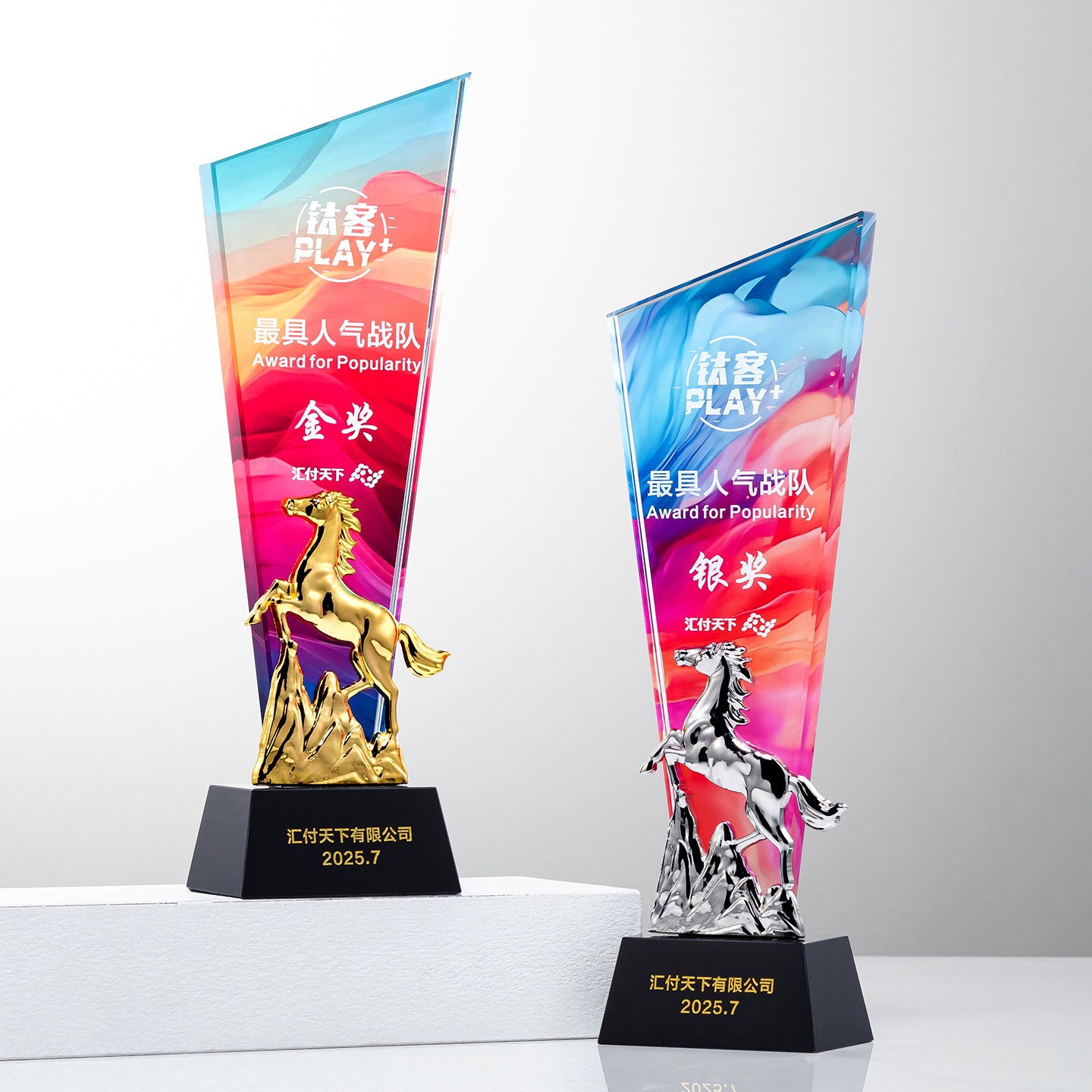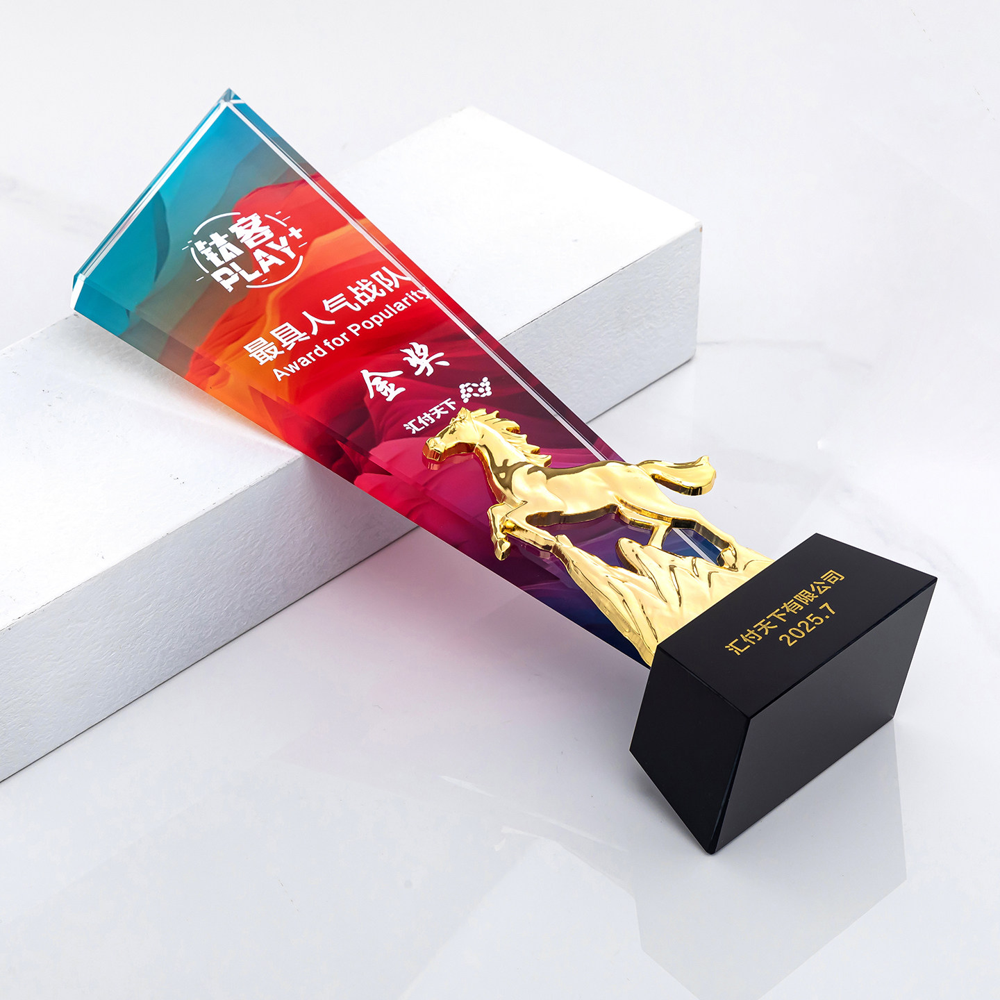 水晶奖杯定制创意马造型高档金属奖牌企业颁奖纪念品刻字年会定制