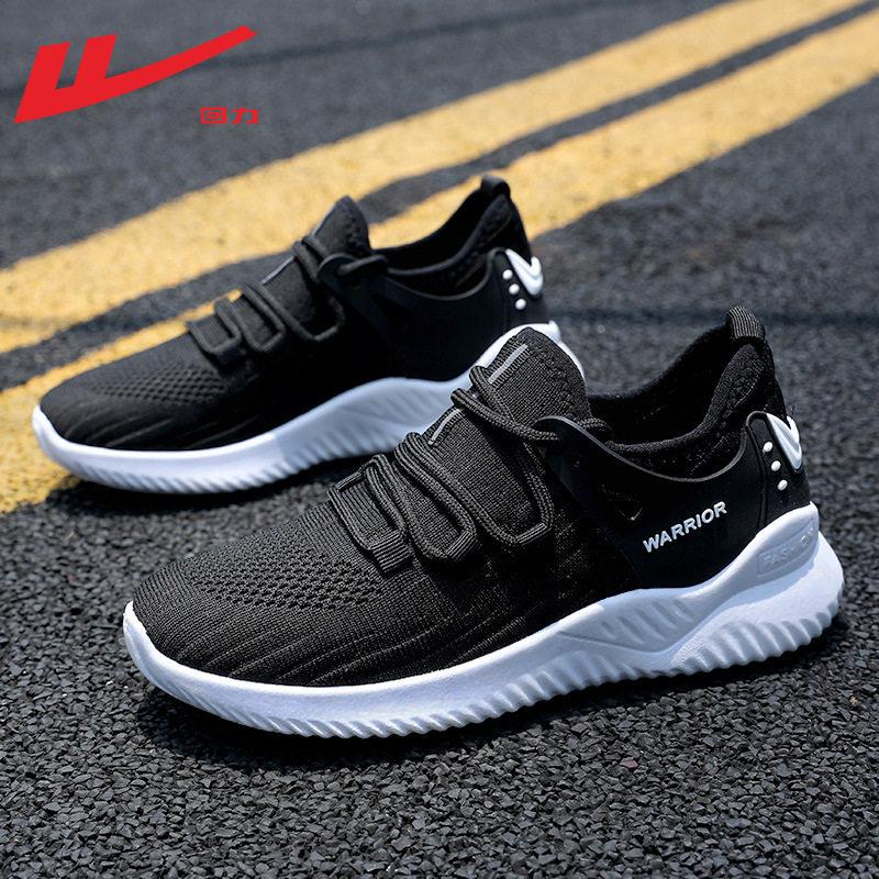回力女鞋运动鞋女款轻便软底超轻飞织网面透气黑色减震跑步鞋