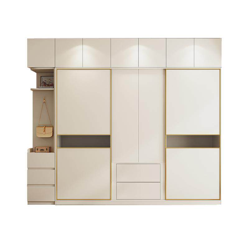 南通上海实木推拉门衣柜现代简约家用主卧室移滑趟门大衣橱奶油风