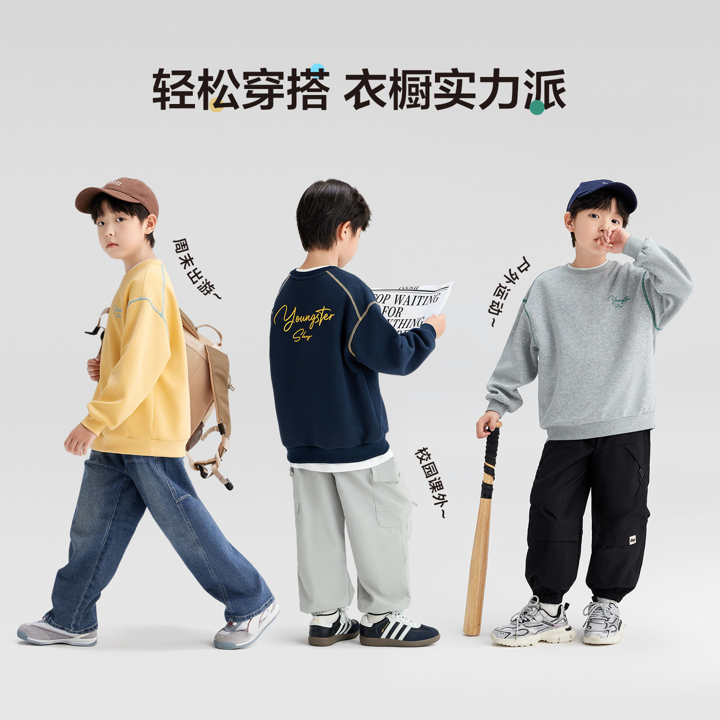左西童装男童卫衣2026新款儿童外套春秋款圆领长袖打底衫大童春装