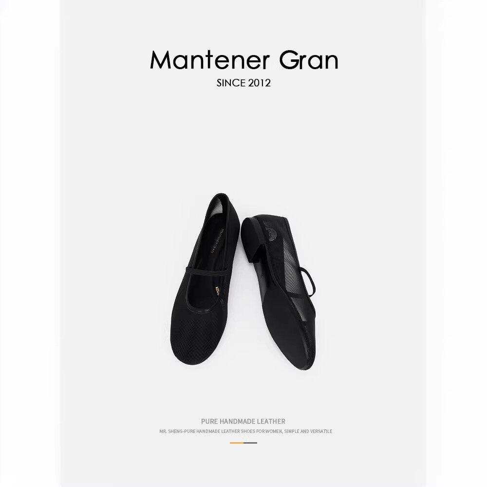 Mantener Gran夏天网面透气不闷脚女鞋低跟浅口单鞋玛丽珍鞋