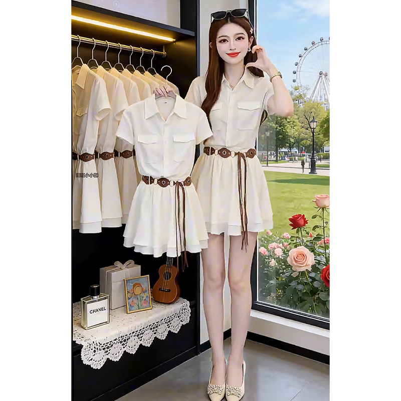 韩系穿搭长袖白色衬衫连衣裙子女早春季2026新款绝美漂亮收腰短裙