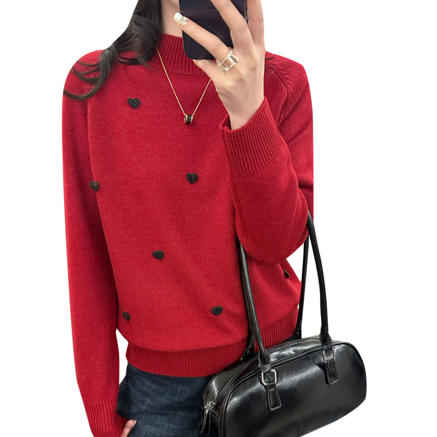 红色毛衣女款2026新款冬季洋气上衣半高领加绒加厚打底衫女内搭冬