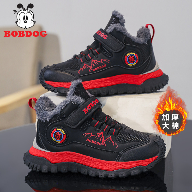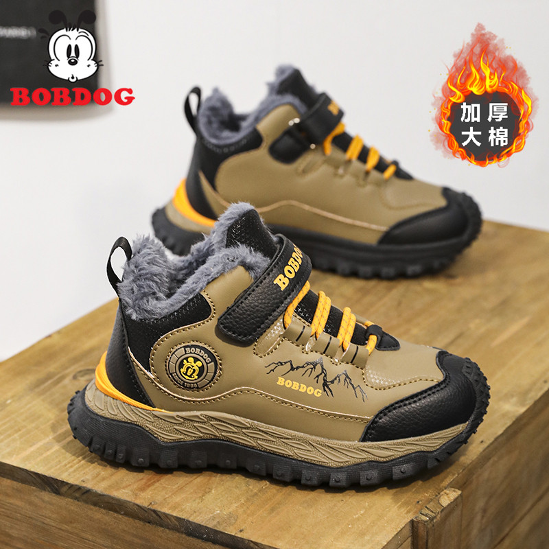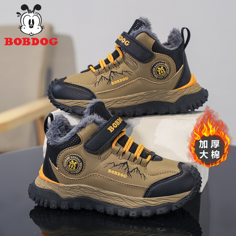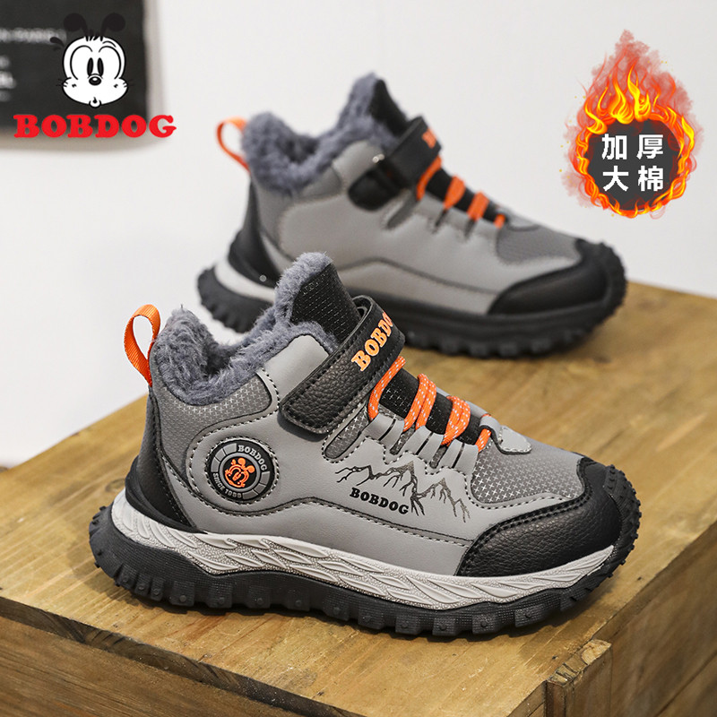 巴布豆男童棉鞋2026冬季新款皮面加绒加厚保暖中大童儿童运动鞋子