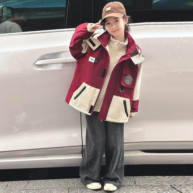 女大童冲锋衣秋冬装2025新款初中生外套女孩夹棉加厚三合一可拆卸