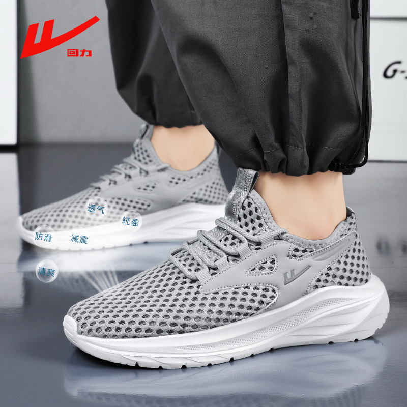 回力运动鞋男款黑色夏季薄款网面透气单网鞋轻便软底超轻跑步鞋女
