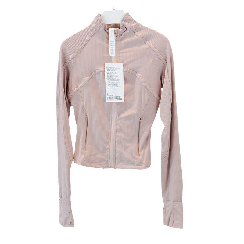 lu同款瑜伽服女士运动外套罗纹夹克立领透气锦纶高弹紧身慢跑修身