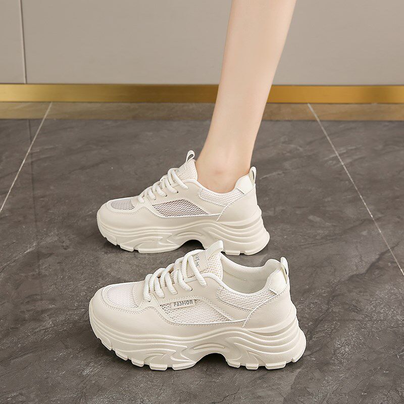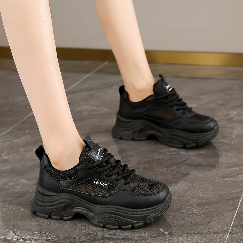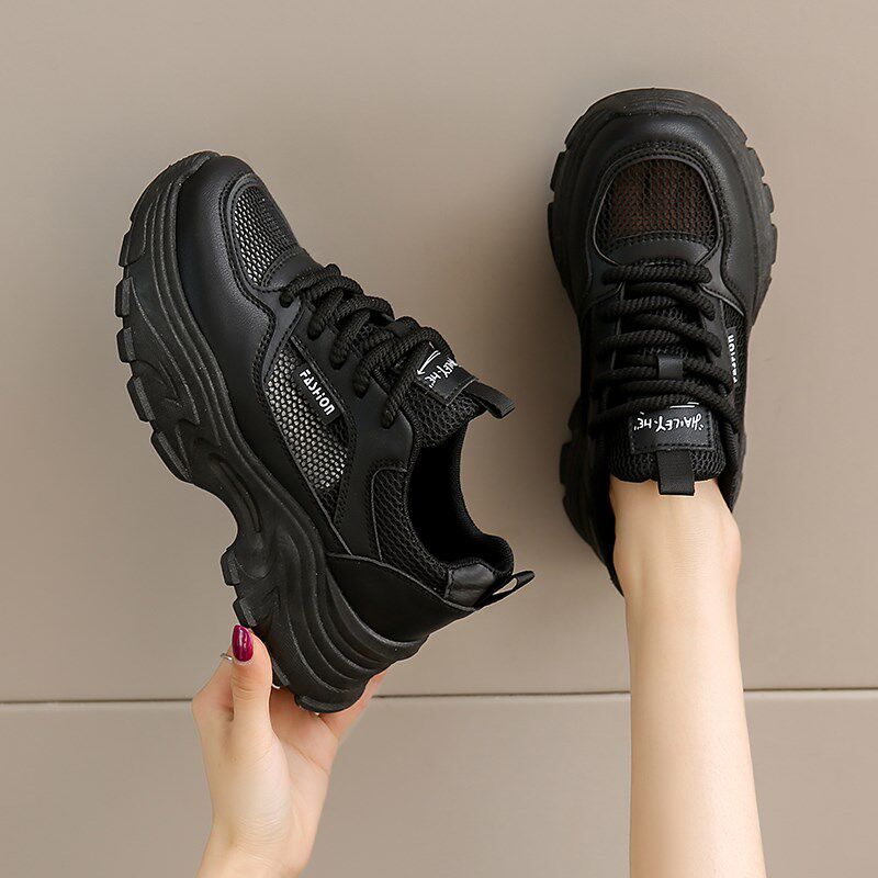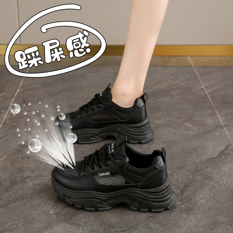 薄款透气网面黑色运动老爹鞋女夏季2025新款厚底不累脚工作防滑鞋