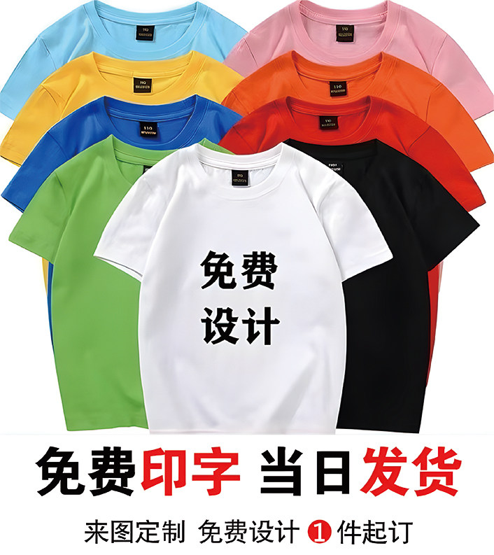 纯棉定制T恤印logo儿童t圆领工作服宽松短袖广告衫班服聚会团体服