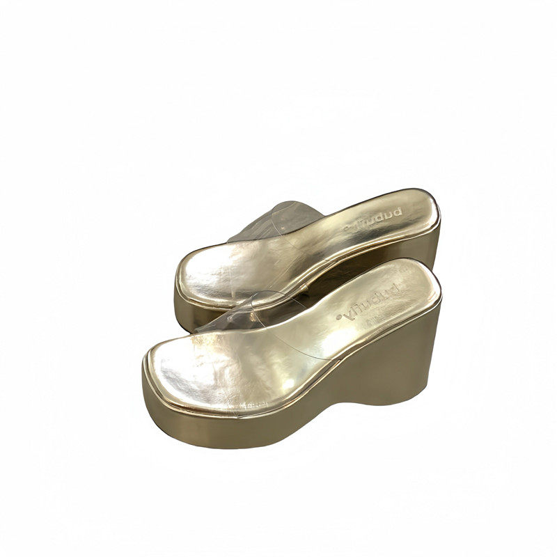 厚底坡跟凉拖鞋女夏10cm超高跟松糕鞋透明小个子增高沙滩凉鞋外穿