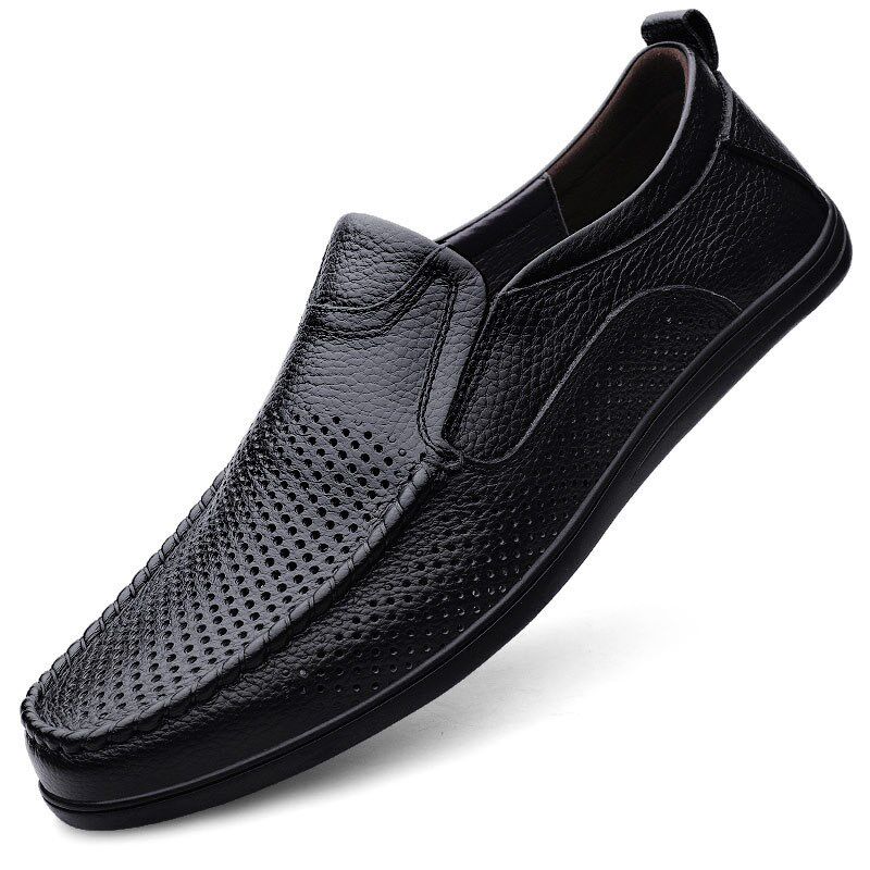 豆豆鞋男真皮秋冬2024休闲鞋男款头层牛皮镂空一脚蹬男士皮鞋