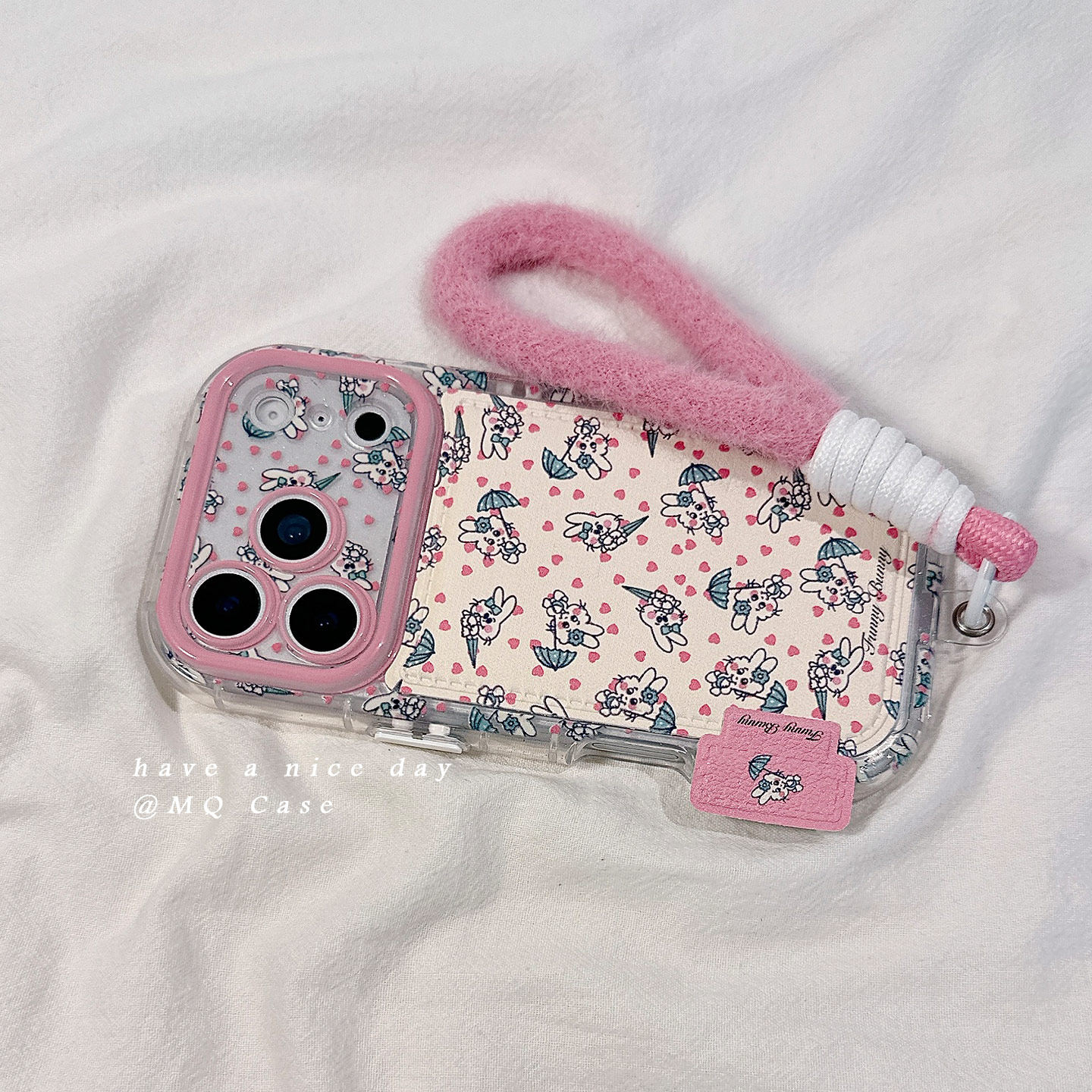 韩系ins风少女心兔子适用苹果17手机壳iPhone17Promax新款16高级感15保护套13硅胶14防摔全包腕带挂绳软壳女p