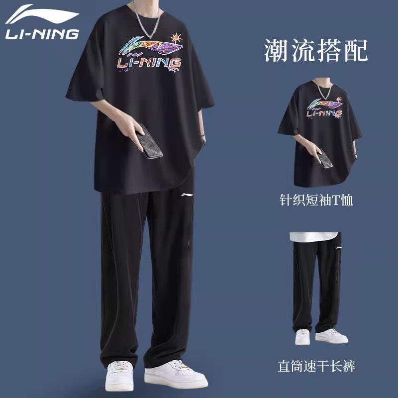 李宁运动套装男夏季新款长裤短袖t恤青少年跑步训练休闲运动服男