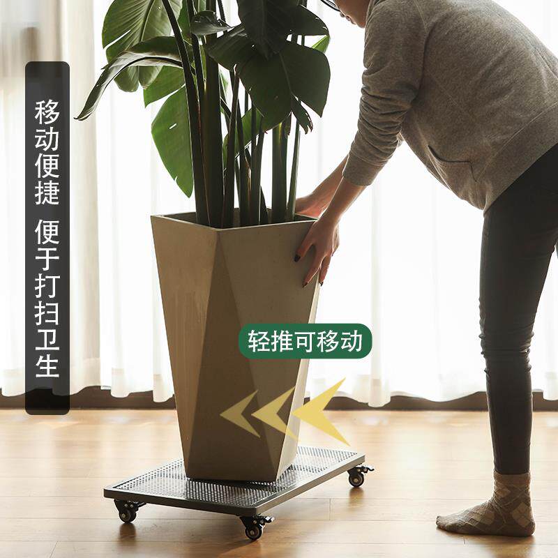 绿植透气万向轮长方形铁艺带轮移动花盆托盘底座大号滚轮四方