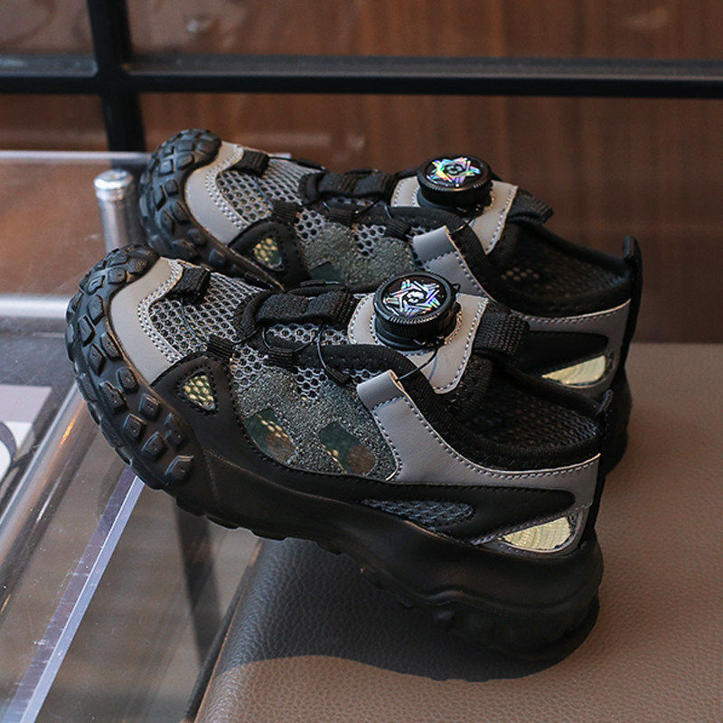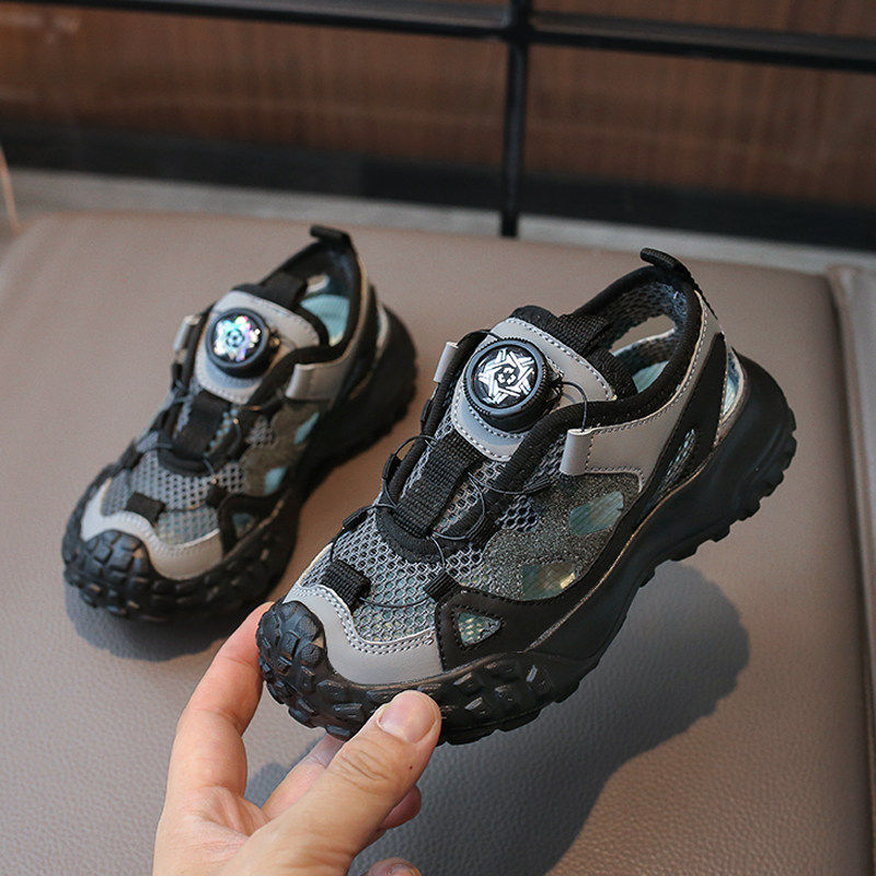 男童运动鞋夏季2026新款儿童镂空单网鞋中大童透气网面老爹框子鞋