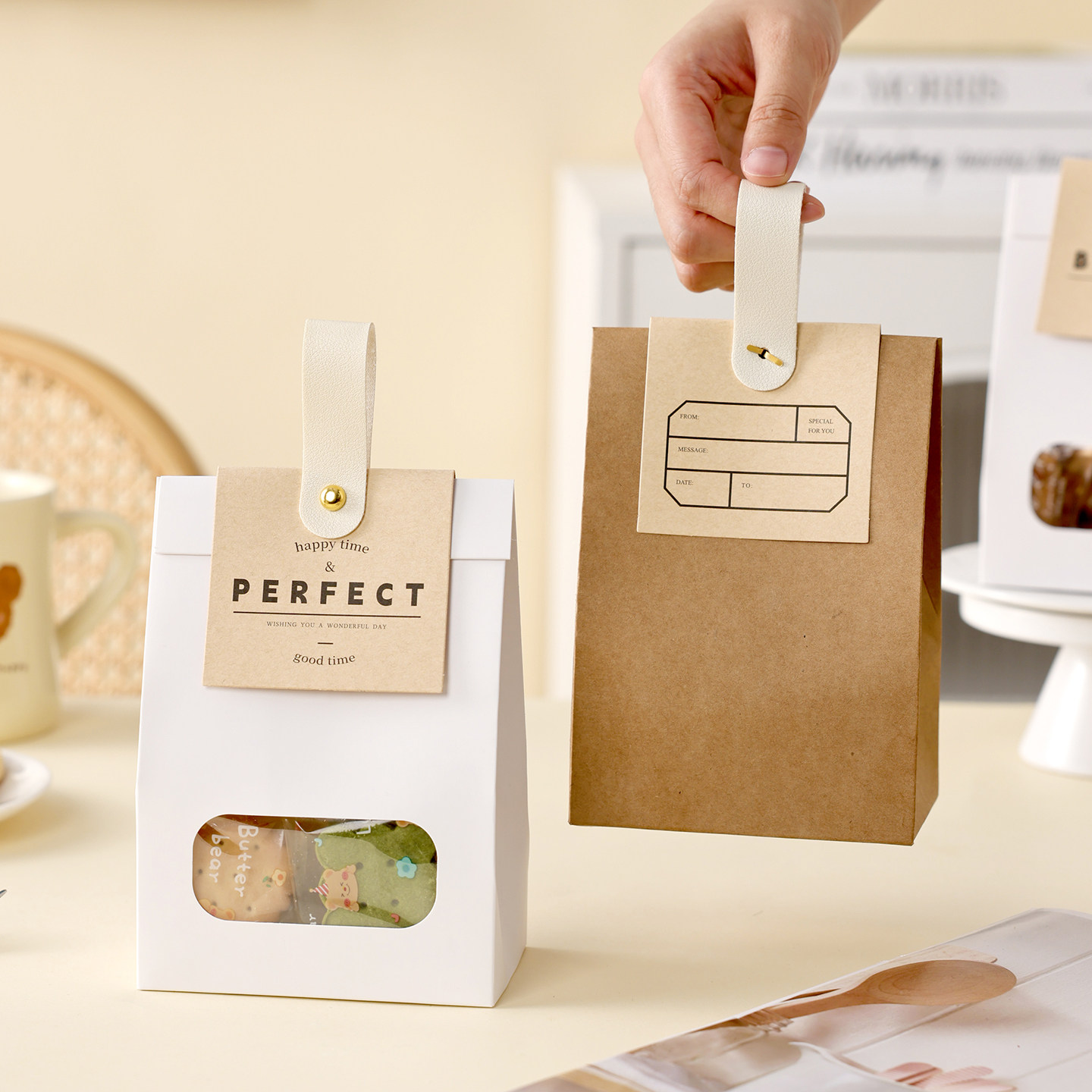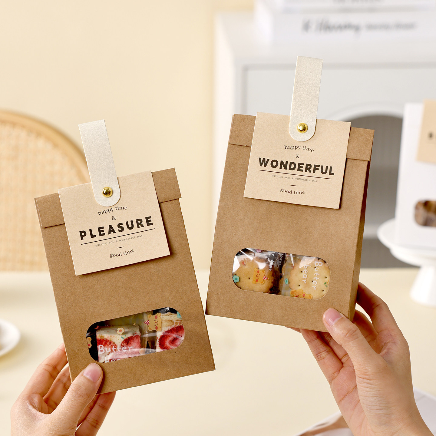 饼干包装袋曲奇雪花酥牛皮纸袋礼品盒太妃糖果牛轧零烘焙的甜打包
