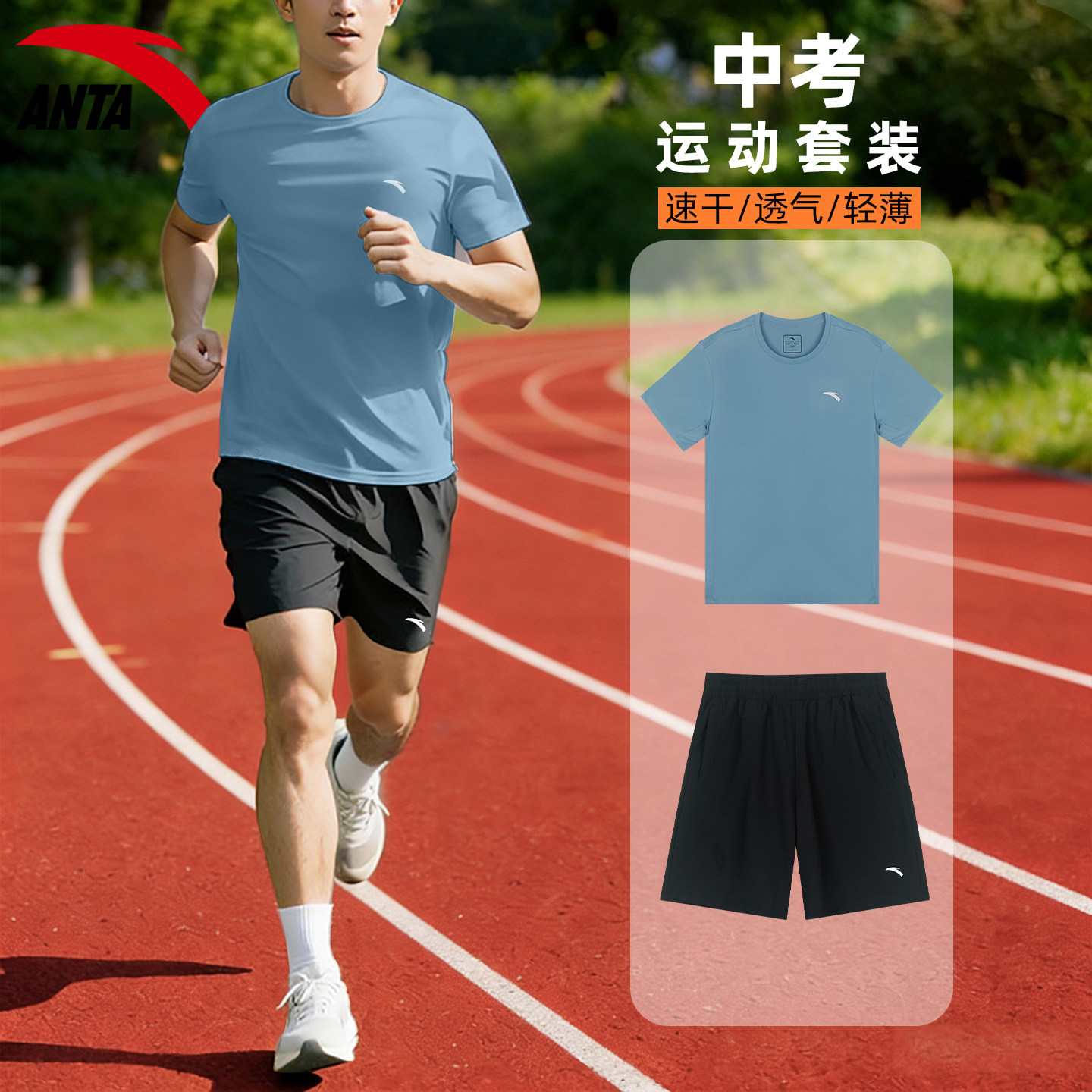 安踏运动套装男学生跑步速干透气田径比赛中考体测夏季短袖短裤