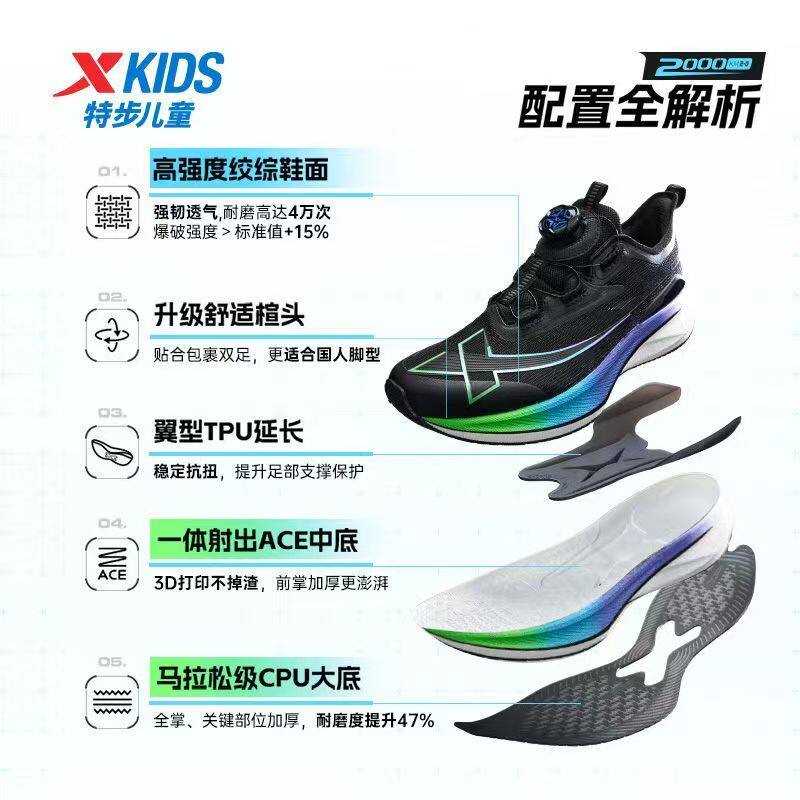 特步童鞋儿童旋转扣运动鞋青少年超轻透气减震缓震竞速休闲跑步鞋