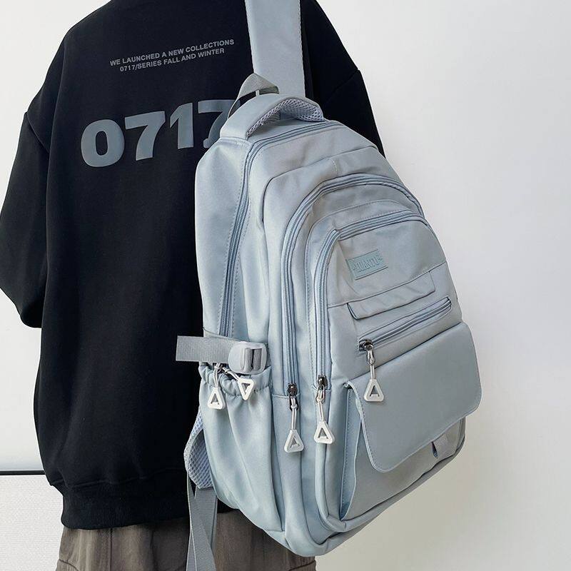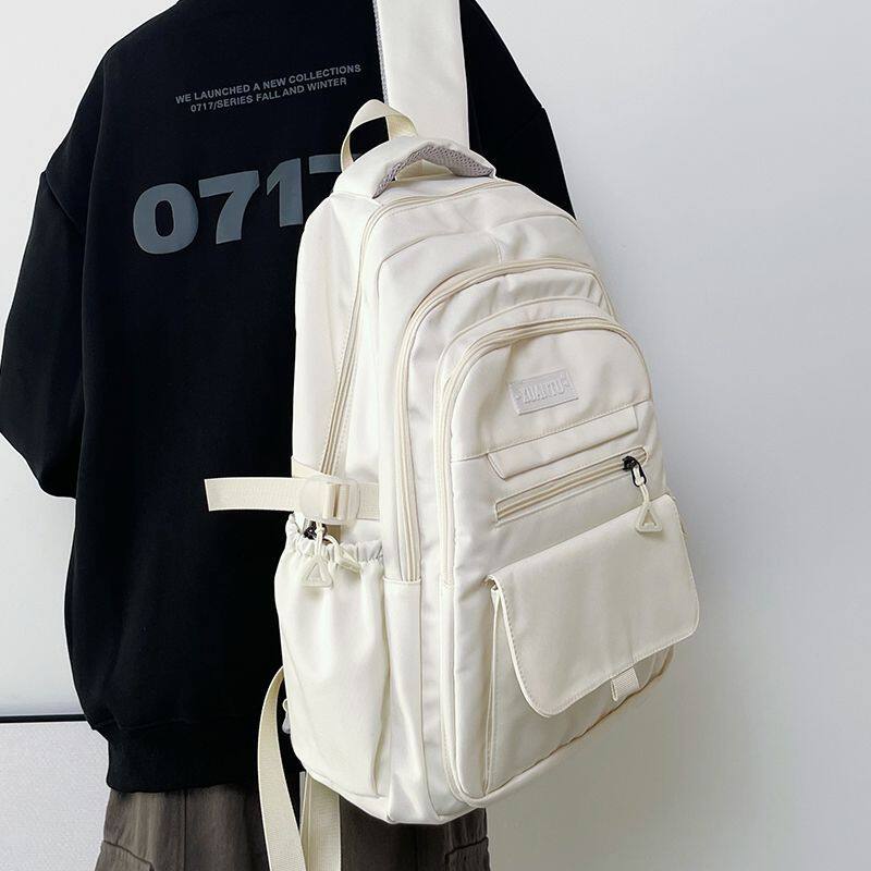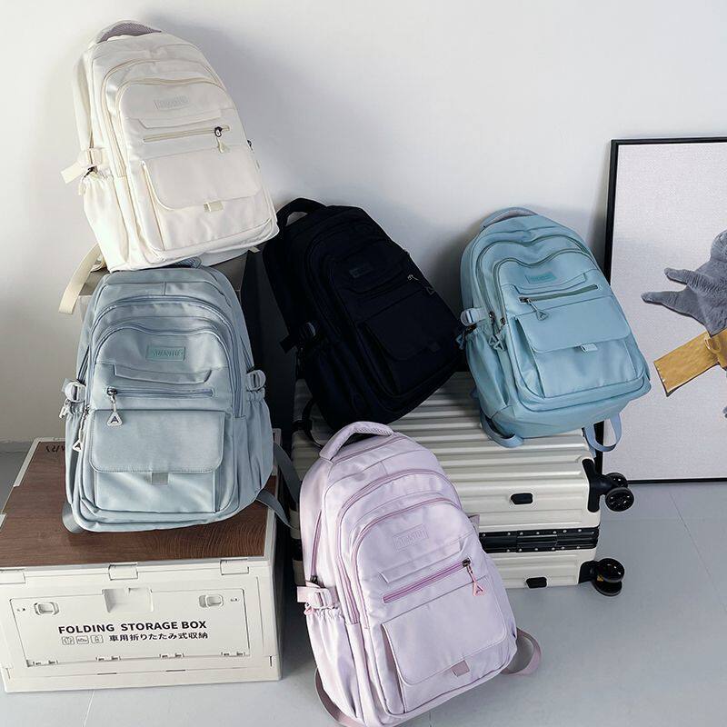 校园初中生书包男生大学生纯色大容量高中生双肩包女休闲百搭背包
