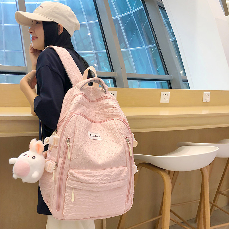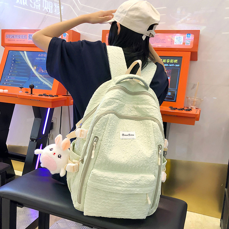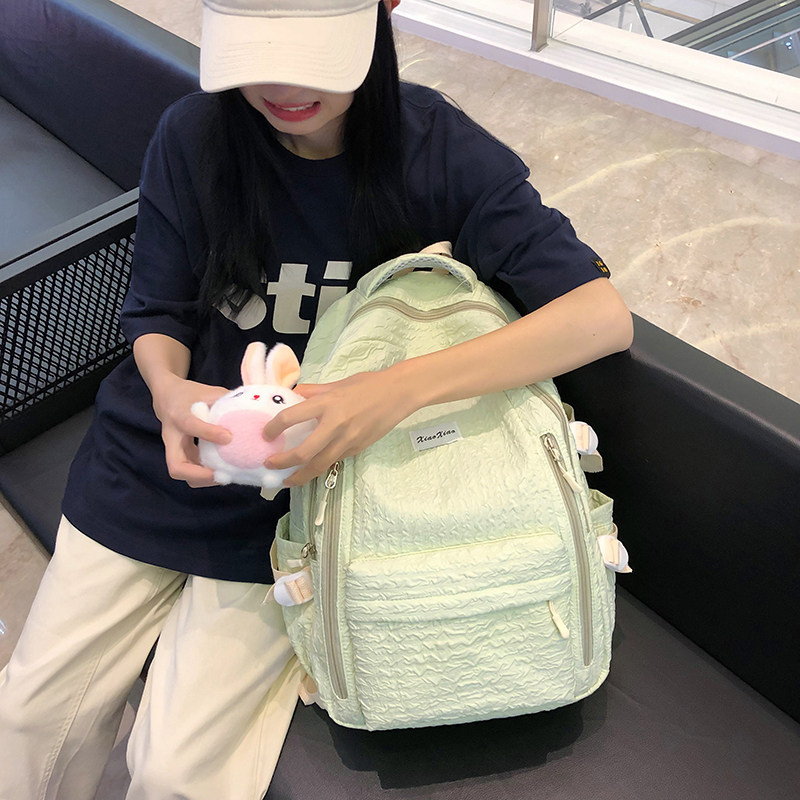 大容量书包女初中学生高中生2024新款韩版校园纯色双肩包旅行背包