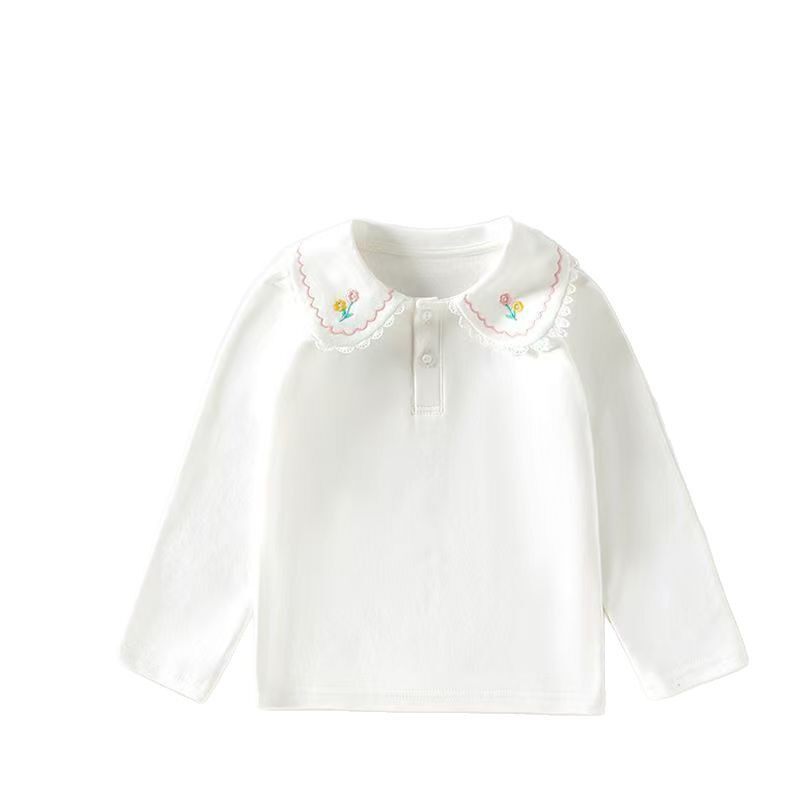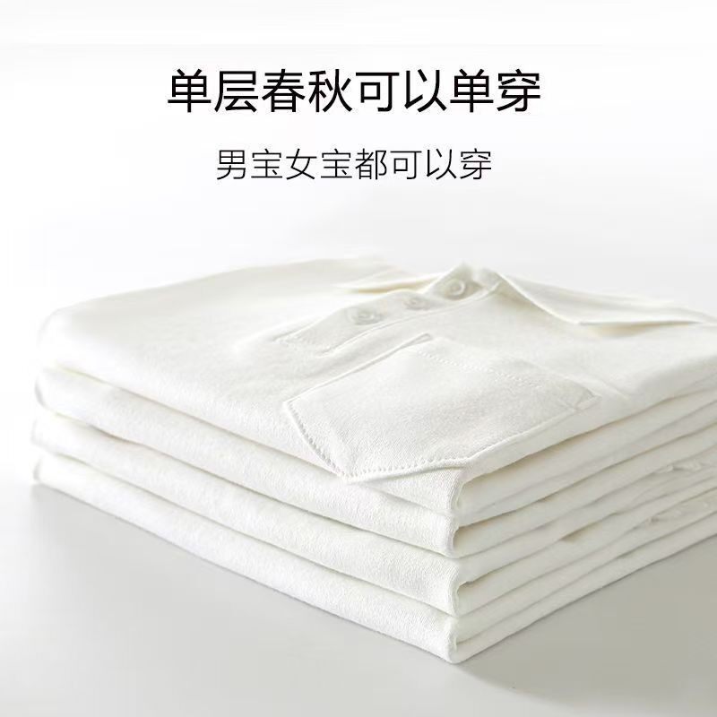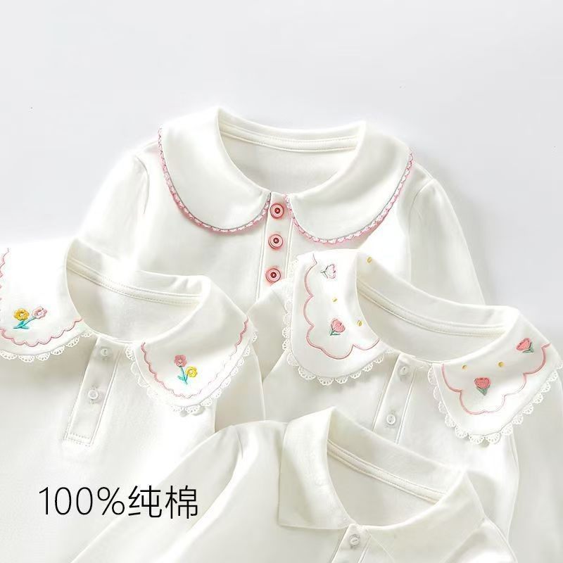 儿童纯棉POLO衫翻领女童打底衫白色校服内搭上衣男童长袖t恤衬衫