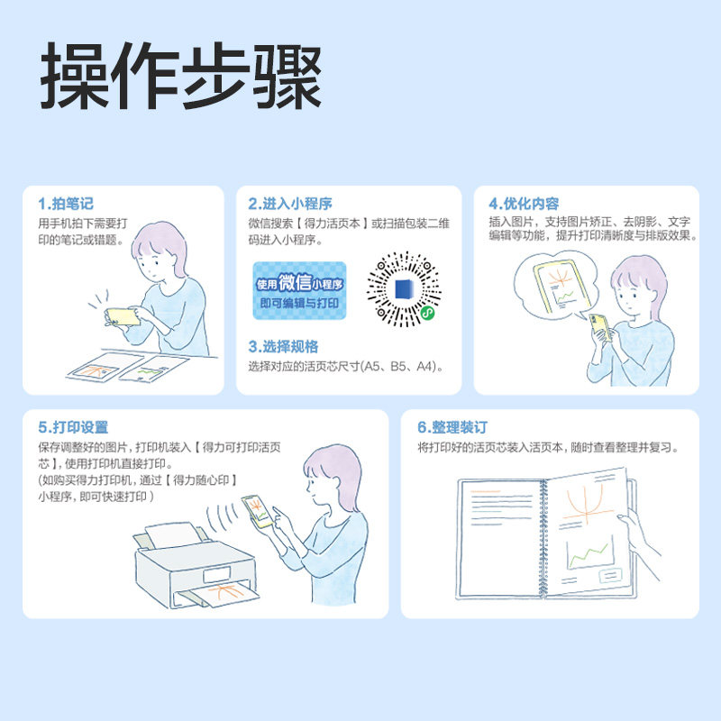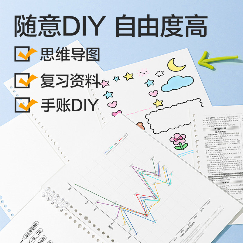 得力可打印活页替芯本B5加厚护眼小学生专用可DIY复习资料打印纸a4复印纸办公活页纸26孔空白活页本替换芯A5