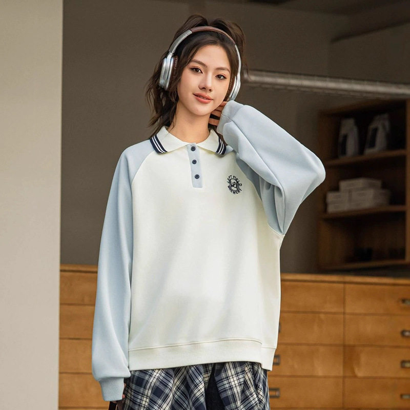 初中学生polo领卫衣少女大童青少年春秋2026高中女生上衣学院风