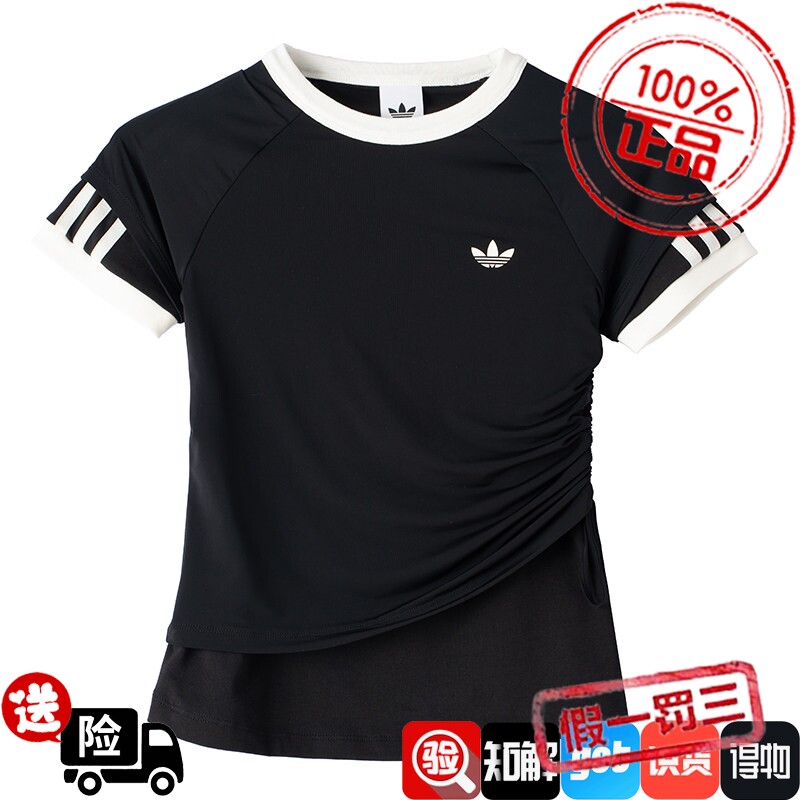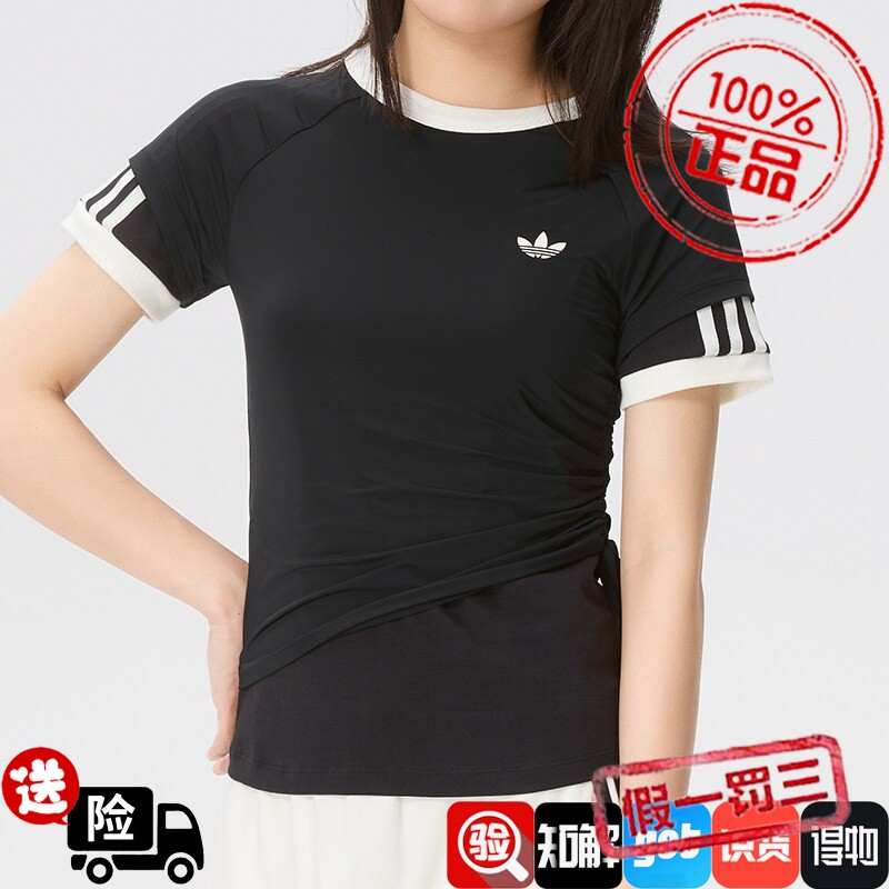 阿迪达斯三叶草修身T恤女2026夏季新款假两件透气运动短袖KW4528