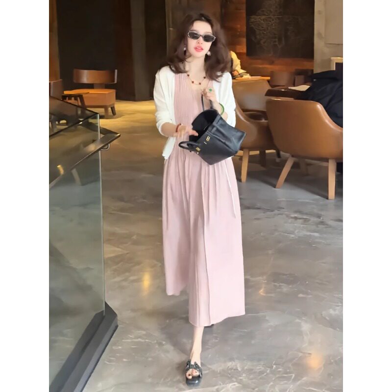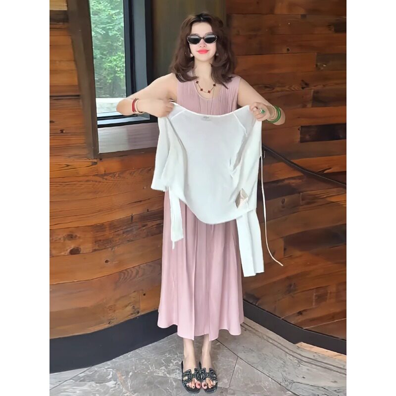高级感时尚减龄套装连衣裙2026年夏季新款中长款遮肚背心裙两件套