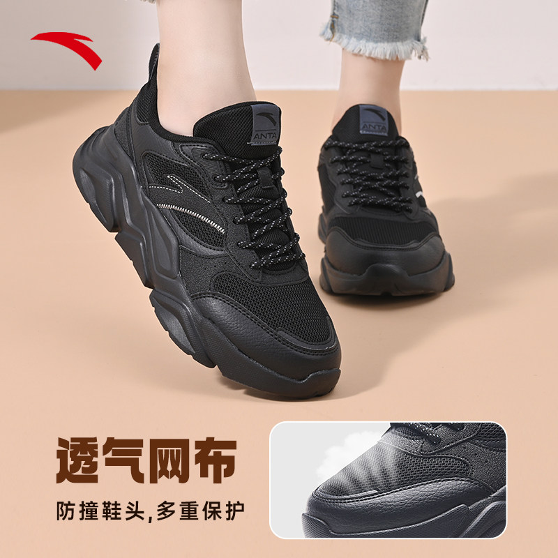 安踏运动鞋女鞋2026新款夏季鞋子黑色女款透气上班不累脚休闲鞋女