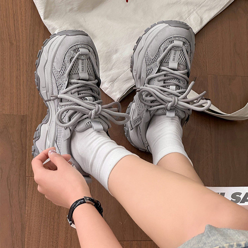 厚底老爹鞋女2026新款春夏季网面透气水钻休闲鞋巨好看的鞋子运动