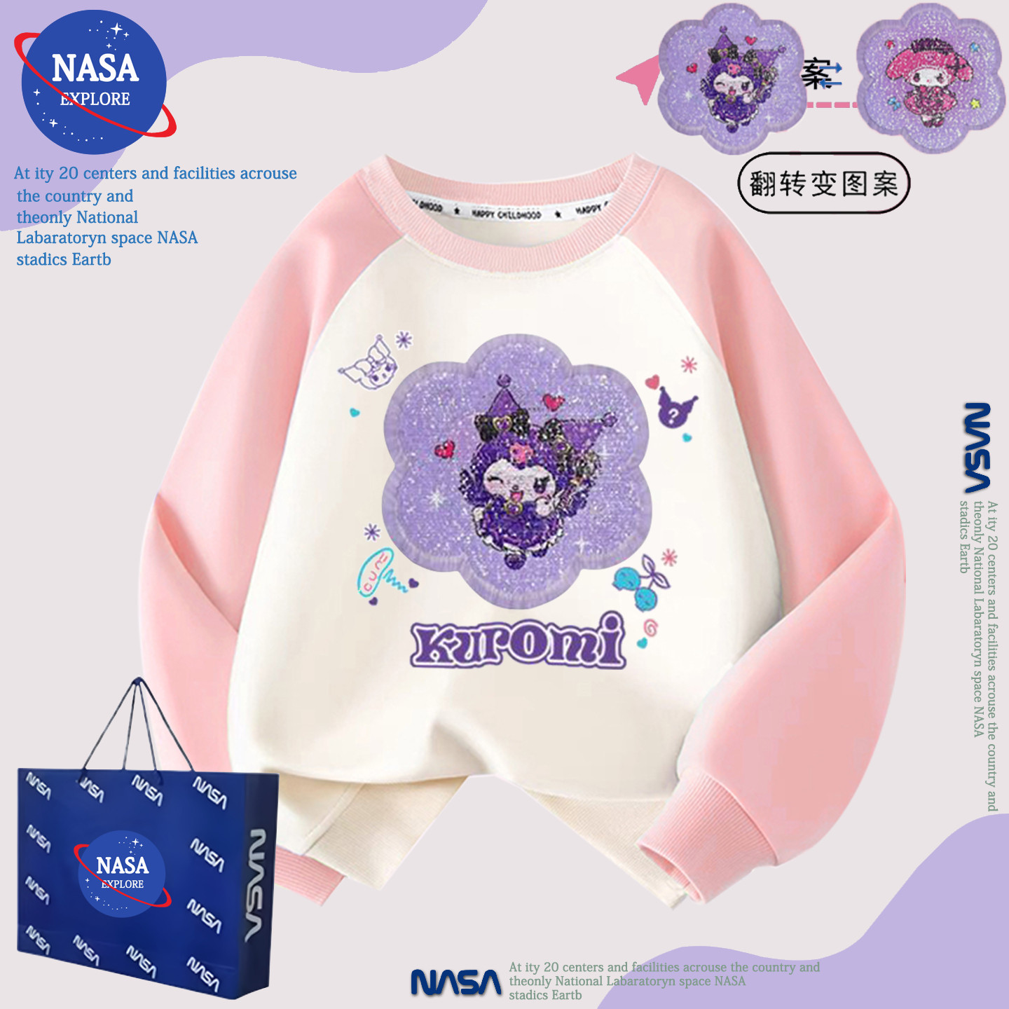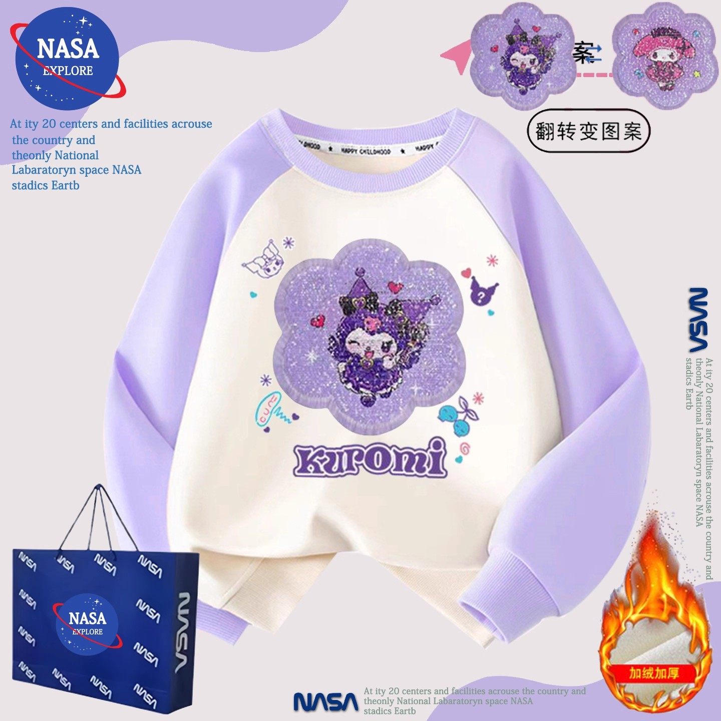 NASA库洛米女童卫衣秋冬新款2025儿童装时髦加绒加厚亮片变色外套